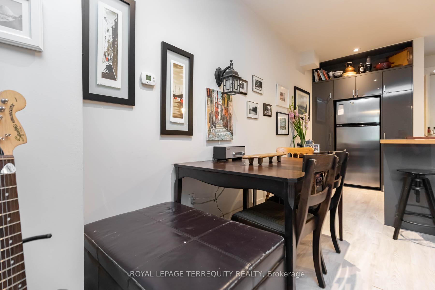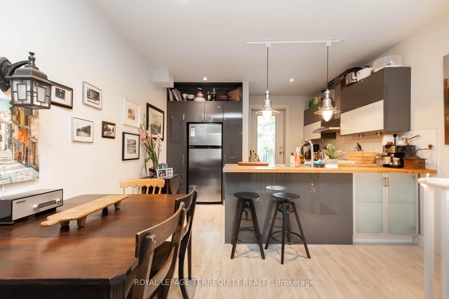 Rare opportunity to lease a beautifully designed 1 bedroom, 2 level unit in a charming multiplex located in the heart of Cabbagetown. This bright split level residence offers approximately 643 sq.ft. of functional living space with a private outdoor patio, ideal for professionals seeking upscale city living. The main level features an open concept kitchen with stainless steel appliances, gas range, dishwasher, and a spacious living and dining area, while the lower level offers a large primary bedroom, and a modern 3 piece bathroom providing excellent separation of space. Includes in suite laundry, central air conditioning, and secure bike storage. Tenant pays hydro and gas. No parking or locker included. Steps to cafes, grocery stores, restaurants, Shoppers Drug Mart, and the greenery of Allan Gardens with easy access to transit, downtown, and the DVP.