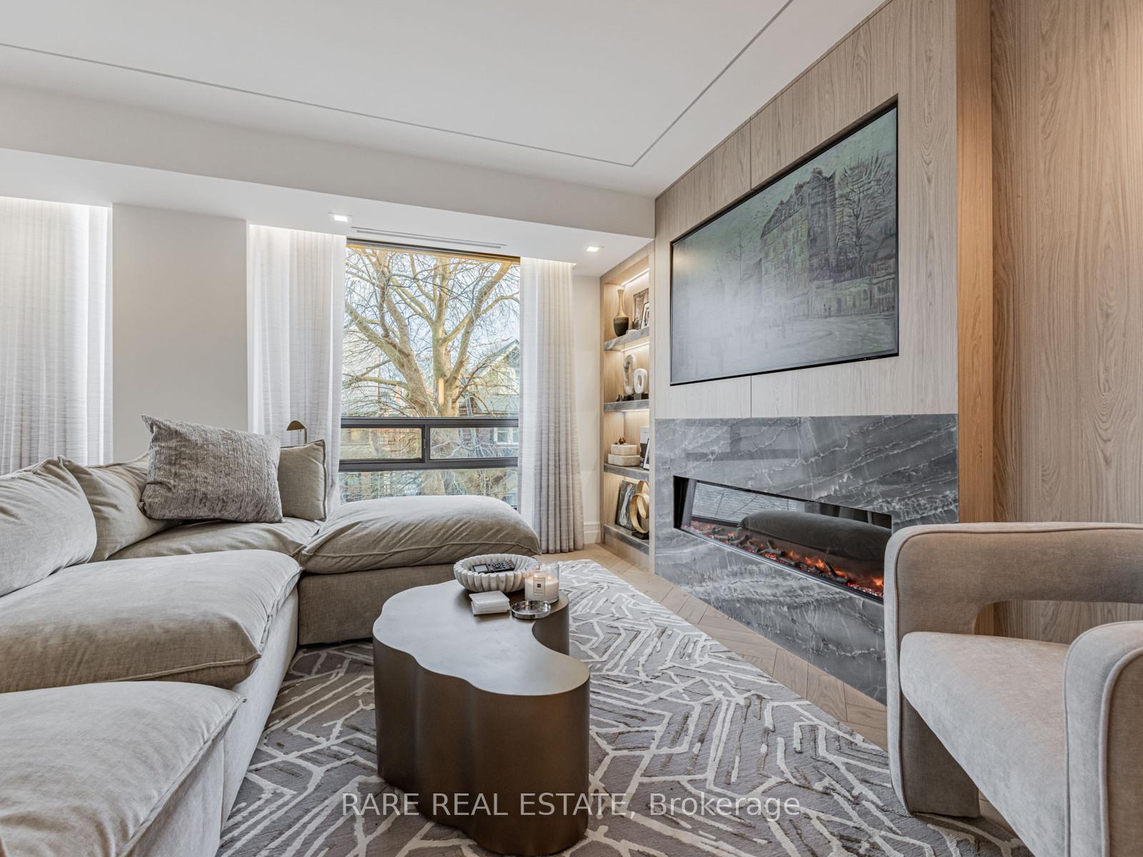 Experience sophisticated living in this meticulously renovated 2-bedroom,FULLY FURNISHED 2-bath suite nestled in the prestigious Forest Hill Village. Spanning approximately 1,450 sq. ft., this residence boasts an open-concept design complemented by exquisite custom finishes. The gourmet kitchen features a waterfall island with a built-in bar fridge, high-end Gaggenau appliances, and a sleek electric downdraft hood fan seamlessly integrated into the cabinetry. A reverse-osmosis water tap enhances the culinary experience. Elegant wood paneling, a built-in electric fireplace, herringbone hardwood floors, and thoughtfully curated lighting create a warm and inviting ambiance throughout. The primary suite offers custom closets and a luxurious ensuite with a glass-enclosed shower, soaking tub, and double sinks. An oversized laundry room with full-size appliances provides ample storage. Included are one parking space and EXTRA LARGE WALK IN a storage locker. The lease encompasses bi-weekly cleaning for added convenience. Building amenities include a renovated pool, fitness centre, sauna, stylish party room, and a sunlit outdoor terrace with BBQs. This boutique 35-suite residence offers an exceptional blend of comfort, style, and prime location in the heart of Forest Hill Village. Minutes to the TTC Subway and Loblaws.