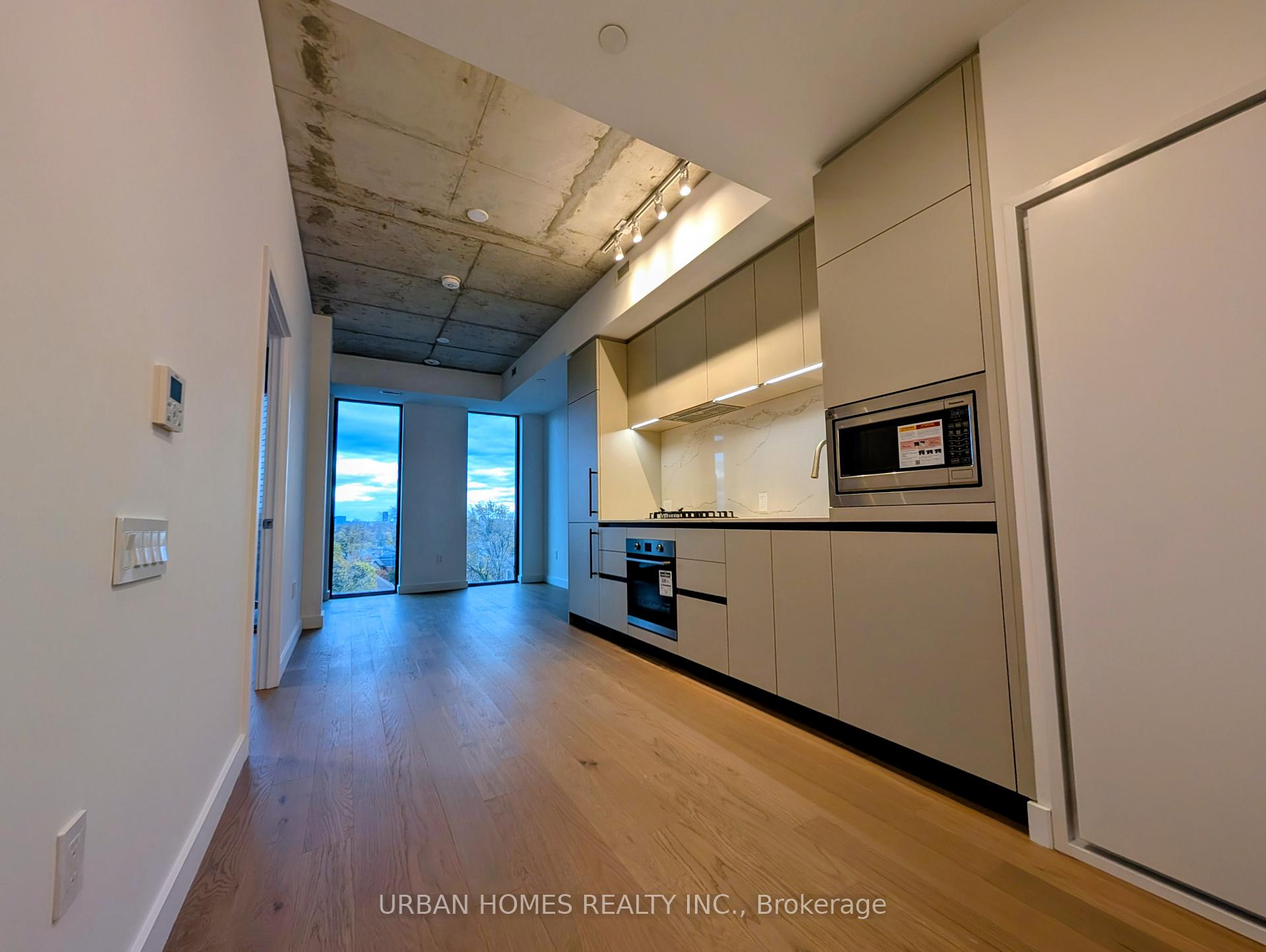 Experience refined living at Leaside Common, a brand-new boutique residence in the heart of Leaside. This beautifully designed 1 bedroom plus den, 2 bathroom suite blends modern finishes with thoughtful functionality throughout. You'll find smooth concrete ceilings, a Scavolini kitchen with Porter & Charles appliances, stone counters and backsplash, a gas cooktop, with over 600 square feet of living space. Warm light hardwood floors, under-cabinet lighting, and plenty of storage elevate the space, offering a seamless mix of style, comfort, and practicality. All just steps from the soon-to-open Eglinton Crosstown LRT.