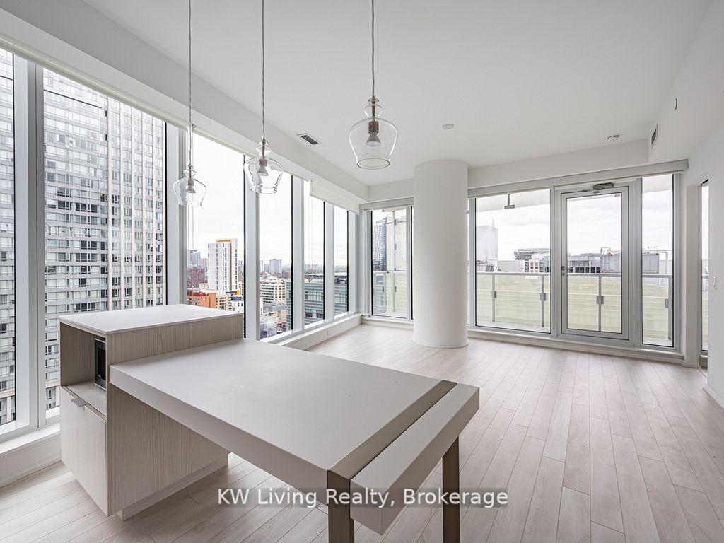 Massey Tower, located steps from the main lifestyle hub of Toronto: Yonge and Dundas Square. Across from downtown's most famous mall, Eaton Centre. TTC subway at front door. Minutes from the Financial Core and hospital row. Location! Location! Location! This well-appointed 2-bdrm, 2-bath with floor-to-ceiling windows featuring panoramic views of the urban city life is over 800 sqft. Includes PARKING and LOCKER. Unique multi-functional centre island can act as eat-in table. High enough to be just away from the hustle bustle but low-enough floor that your balcony is usable and not just a wind tunnel. Speaking of balcony, this is a gorgeous wrap-around balcony with bright north-east views. Spectacular feeling from the moment you step into the Living space. Modern facilities, 24-hour security, party/games room, fitness room. Featuring one of Toronto's only automated parking facilities drive up to the garage and your car will be parked by the automated attendant! Truly one of the few in the city with this amazing time-saving feature. NOTE Pictures are from when unit was first purchased and not necessarily representative of its current state.