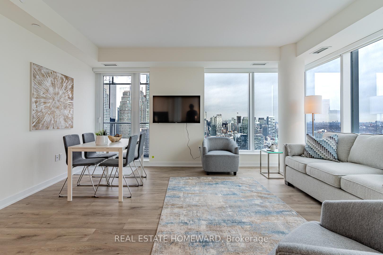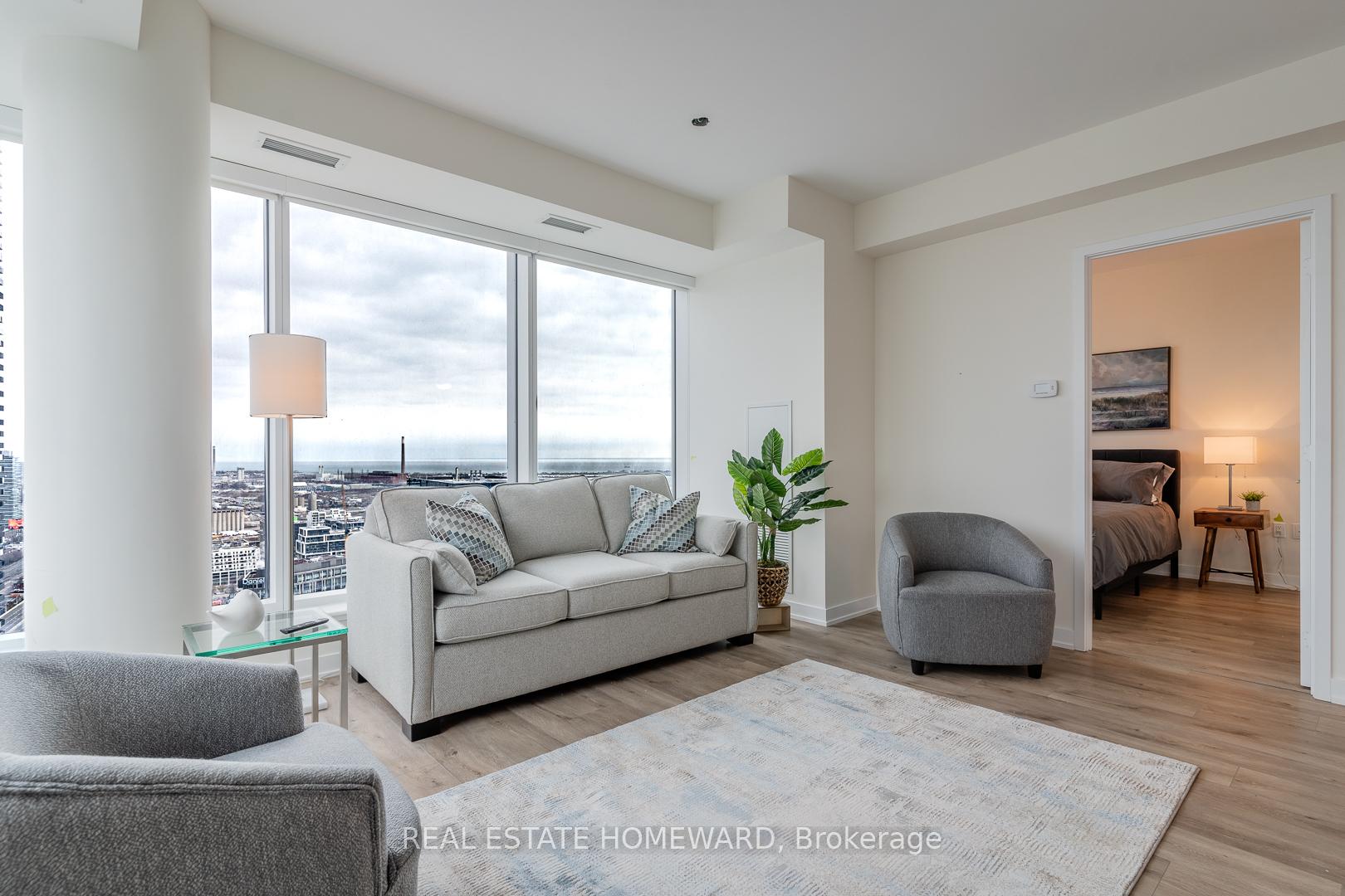 Fully furnished - Utilities Included - Parking Included! Impeccably appointed, this turnkey residence offers refined downtown living at its best. Welcome to 28 Freeland Street, a generously sized two-bedroom corner suite with parking, designed for those who value comfort, convenience, and style. Soaring 9-foot ceilings and expansive windows flood the home with natural light, showcasing sweeping city skyline views from this coveted corner exposure. Every detail has been thoughtfully curated-all utilities and high-speed internet are included, allowing for a truly seamless move-in experience. Residents enjoy access to five-star amenities, including a fully equipped fitness centre, yoga studio, business lounge, party room, and private theatre. Ideally located just steps from Rogers Centre, Scotiabank Arena, the CN Tower, and Union Station, with effortless access to the Gardiner Expressway and Don Valley Parkway. Daily conveniences are at your doorstep-walk to Farm Boy, Loblaws, LCBO, Sugar Beach, and Yonge Street. Short-term leasing options available, making this an exceptional opportunity for executives, professional athletes, and film & television professionals seeking a sophisticated, fully serviced downtown residence. 6 Month Minimum Require - Owner Open to longer term stays as well.