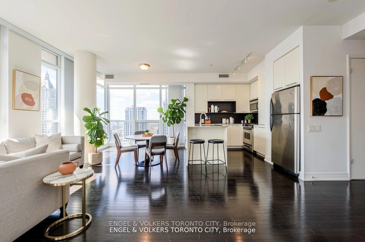 Welcome to the Lower Penthouse at The Met! This stunning 42nd floor corner suite offers 2 bedrooms, 2 bathrooms, and nearly 1,000 sq. ft. of stylish living space. Featuring an open-concept layout with soaring ceilings. This residence combines modern design with everyday comfort. Expansive floor-to-ceiling windows flood the suite with natural light while showcasing panoramic city and waterfront views. Step out onto the spacious balcony to take in the wide, uninterrupted scenery at any time of day.Located in the heart of Torontos Church-Yonge Corridor, you'll enjoy unbeatable convenience. The TTC, shopping, restaurants, University of Toronto, Toronto Metropolitan University, hospitals, and cultural attractions are all just steps away.This Lower Penthouse also includes one parking space and access to premium building amenities, offering the perfect blend of luxury and urban lifestyle. Don't miss your chance to own this spectacular Lower Penthouse suite at The Met!