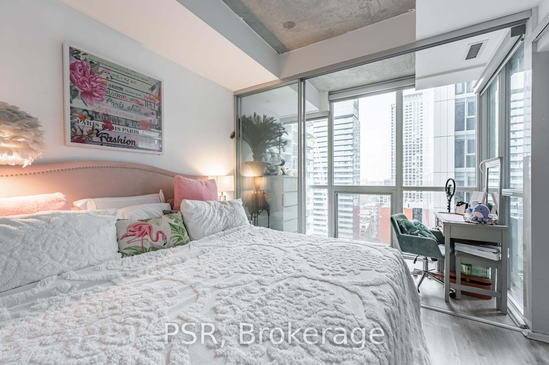 Welcome to the iconic Bisha Residences, offering a fully furnished 1-bedroom plus den suite in the heart of Toronto's Entertainment District. This stunning residence features 9-foot ceilings and floor-to-ceiling windows that flood the space with natural light and showcase impressive city views. The functional, open-concept layout is finished with engineered hardwood flooring throughout and a sleek modern kitchen complete with built-in appliances and granite countertops, perfect for both everyday living and entertaining. Residents enjoy 24-hour concierge service and access to world-class hotel-style amenities, including a spectacular rooftop infinity pool and lounge, catering kitchen, and ground-floor café. Everything you need is literally at your doorstep-TTC transit, top restaurants, nightlife, shopping, theatres, bars, and pubs, along with endless lifestyle conveniences. An exceptional opportunity to live in one of Toronto's most prestigious and vibrant addresses.