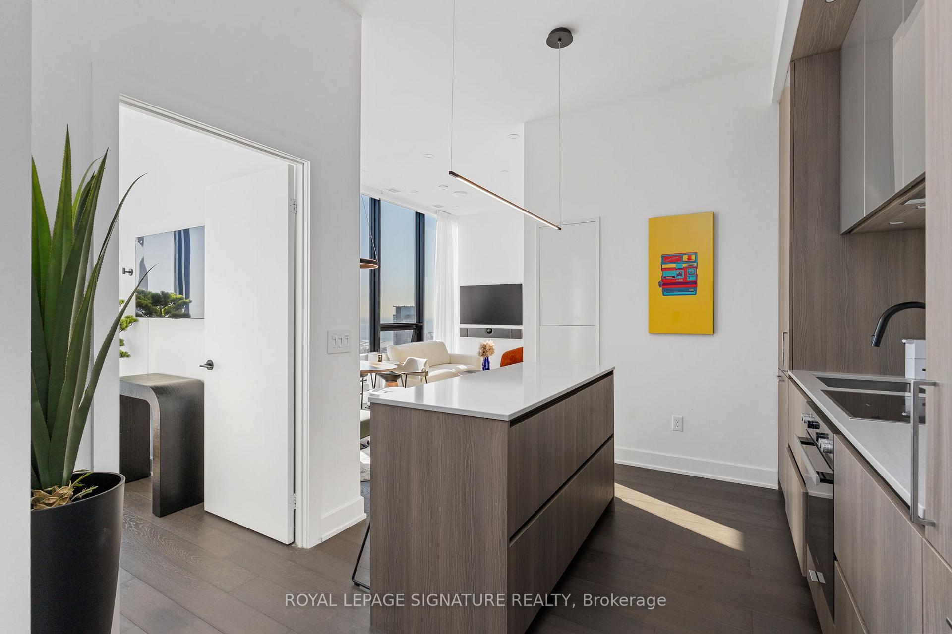 Experience the Pinnacle of Toronto Living in this Meticulously Curated 3 Bed 2 Bath Fully Furnished Unit at the NOBU Residences. Perched High Above the City, this South-Facing Penthouse Collection Unit Offers Clear Views of Lake Ontario, The CN Tower & Rogers Center. Open Concept Layout, 10 ft Ceilings, Gourmet Kitchen with Integrated Miele Appliances, Matching Quartz Countertop and Backsplash. Tastefully Decorated with Custom-Designed Furniture & lighting, Hand Picked Modern Art and a Premium Integrated Bang & Olufsen Sound System. South Views and Floor to Ceiling Windows make this Unit Bright and Airy. Transit Score of 100/100, Walk Score of 99/100. Indulge in Nobu's Signature Fitness center, Sauna & Steam Room, Zen Garden Screening Room & More. Priority Reservations at the World-Renowned Nobu Restaurant Downstairs. This isn't just a Lease; it's a Fully Realized Lifestyle