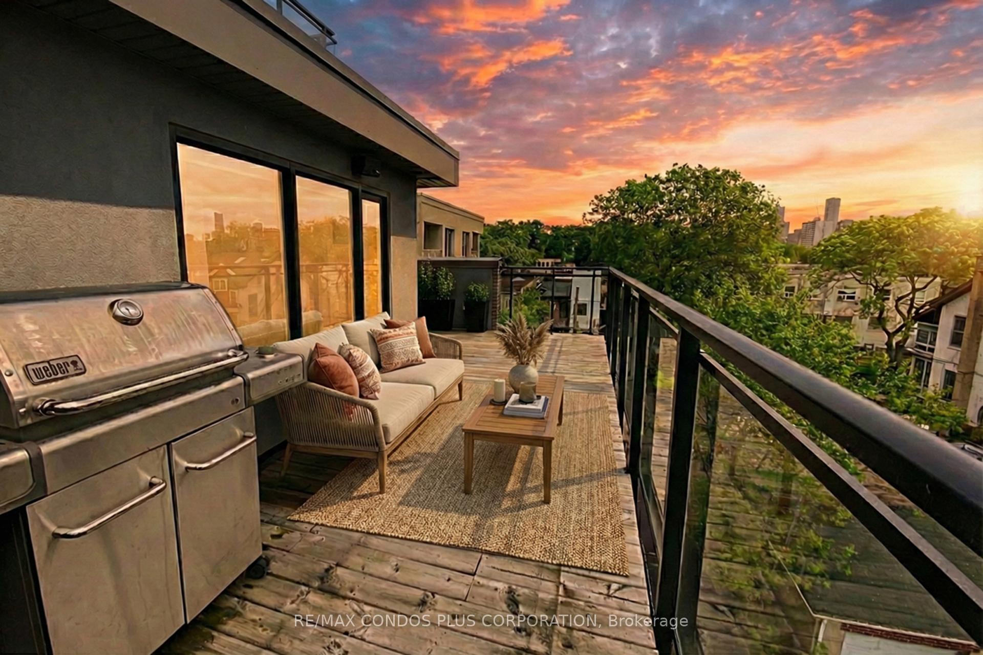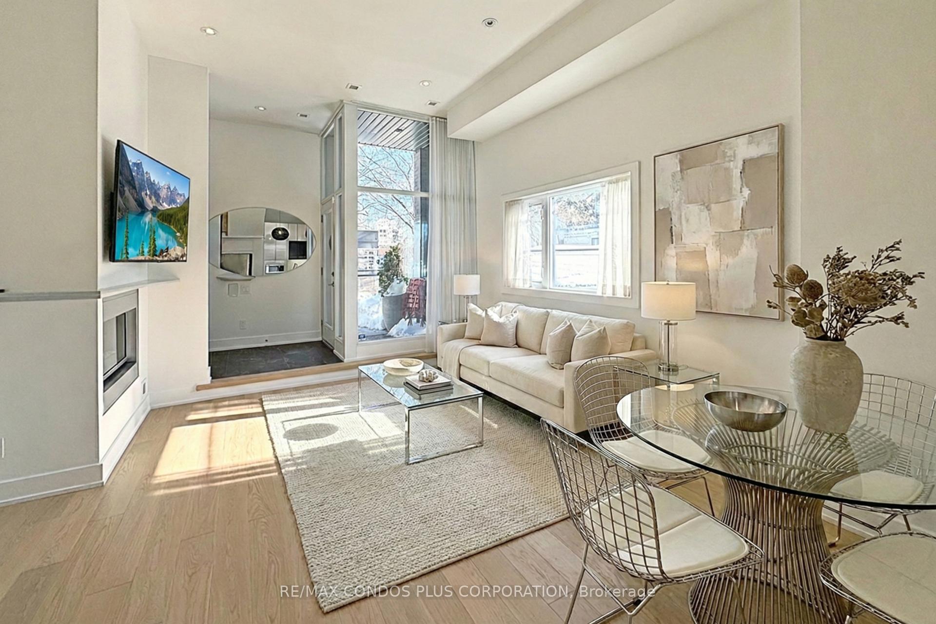 Welcome home to the Loft House at 483 Dupont Street - where contemporary elegance meets the vibrant heartbeat of the Annex. This exceptional 1-bedroom plus den executive suite offers a rare opportunity to experience luxury living in one of Toronto's most exclusive boutique developments. Step inside and feel the warmth. Soaring 11-foot ceilings and floor-to-ceiling windows bathe the open-concept main floor living space in natural light, while pristine new 2026 flooring anchors the sophisticated interior with radiant in-floor heating and a rare gas fireplace. The gourmet kitchen - a chef's dream - features sleek quartz counters with a large breakfast bar seating, professional-grade gas cooking, and seamless flow into your entertaining space. Your private retreat awaits upstairs: a generous bedroom sanctuary with sweeping windows, intimate balcony access, and a spa-inspired 5-piece bathroom featuring heated floors, dual vanity, and separate soaker tub and shower. Designer ripplefold curtains frame spectacular southeast views, while the rare gas fireplace adds ambiance on crisp evenings. Enjoy a third-floor office nook and plenty of custom storage and closet organizers. But wait, there's more! The true showstopper. Your private rooftop terrace - over 400 square feet of urban paradise complete with a gas line, Weber BBQ, Outdoor Furniture and breathtaking south-facing views of tree canopies and the CN Tower. Host sunset dinners, morning yoga, or simply escape to your sky-high sanctuary. Thoughtful touches throughout include central vacuum, in-floor radiant heating on the main floor, and a secure underground parking spot. Enjoy a bonus ground-floor terrace that offers yet another private outdoor retreat. Steps to the Bloor and Dupont subway lines, world-class dining, boutique shopping, and lush parks. Experience the Annex Loft House difference, where every detail whispers luxury and every moment feels extraordinary. See Video Tour for more!