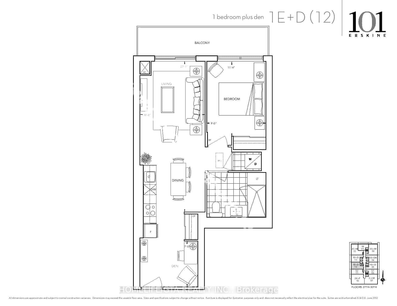 AVAILABLE March 1-15, 2026! 1 Bed+Den/1Bathroom unit for lease at Tridel's 101 Erskine with 1 Locker. This unit offers an open concept layout. This suite has laminate flooring throughout, modern kitchen with lots of storage, s/s or built in appliances, granite kitchen countertop w/ backsplash, under-mount stainless steel sink. Large open concept living/dining area and offers a 3 pc ensuite. The den is well sized and perfect for an office. Ensuite Laundry included. The building offers ample of visitor parking, outdoor pool, gym, yoga room.