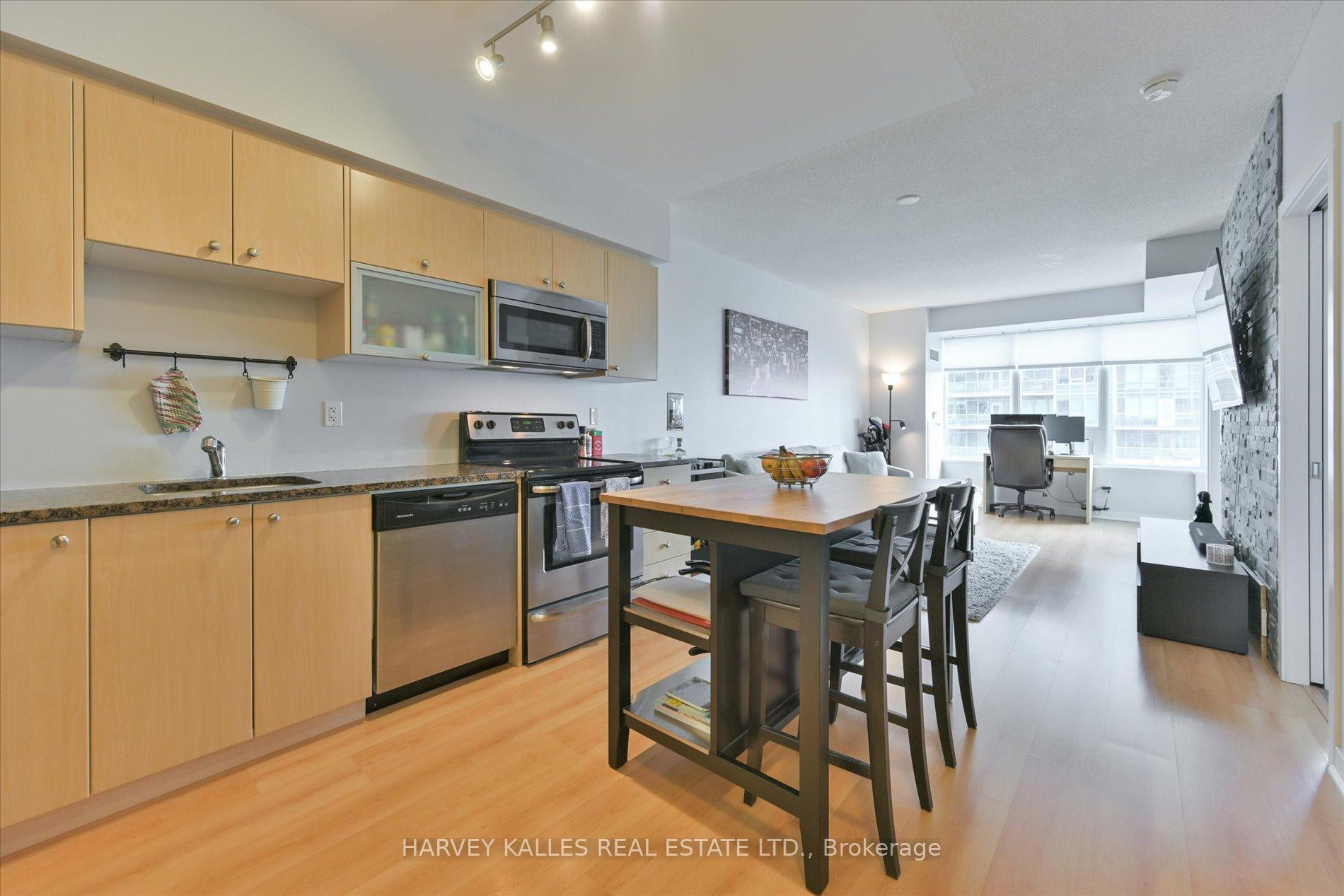 Welcome to Liberty Towers condos! Liberty Village living at its finest. This spacious, open concept, 1 bedroom unit features modern finishes, stunning nw views, 1 parking spot, and 1 locker. Natural light pours into this unit. Large master bedroom with enough space for a king bed. The quiet suite is situated away from the noise of the elevator & garbage chute. Walk Score 91. Bike Score is 98. Shopping, cafes, restaurants, entertainment & TTC right at your door. Walking distance to King Street West and trendy West Queen West.