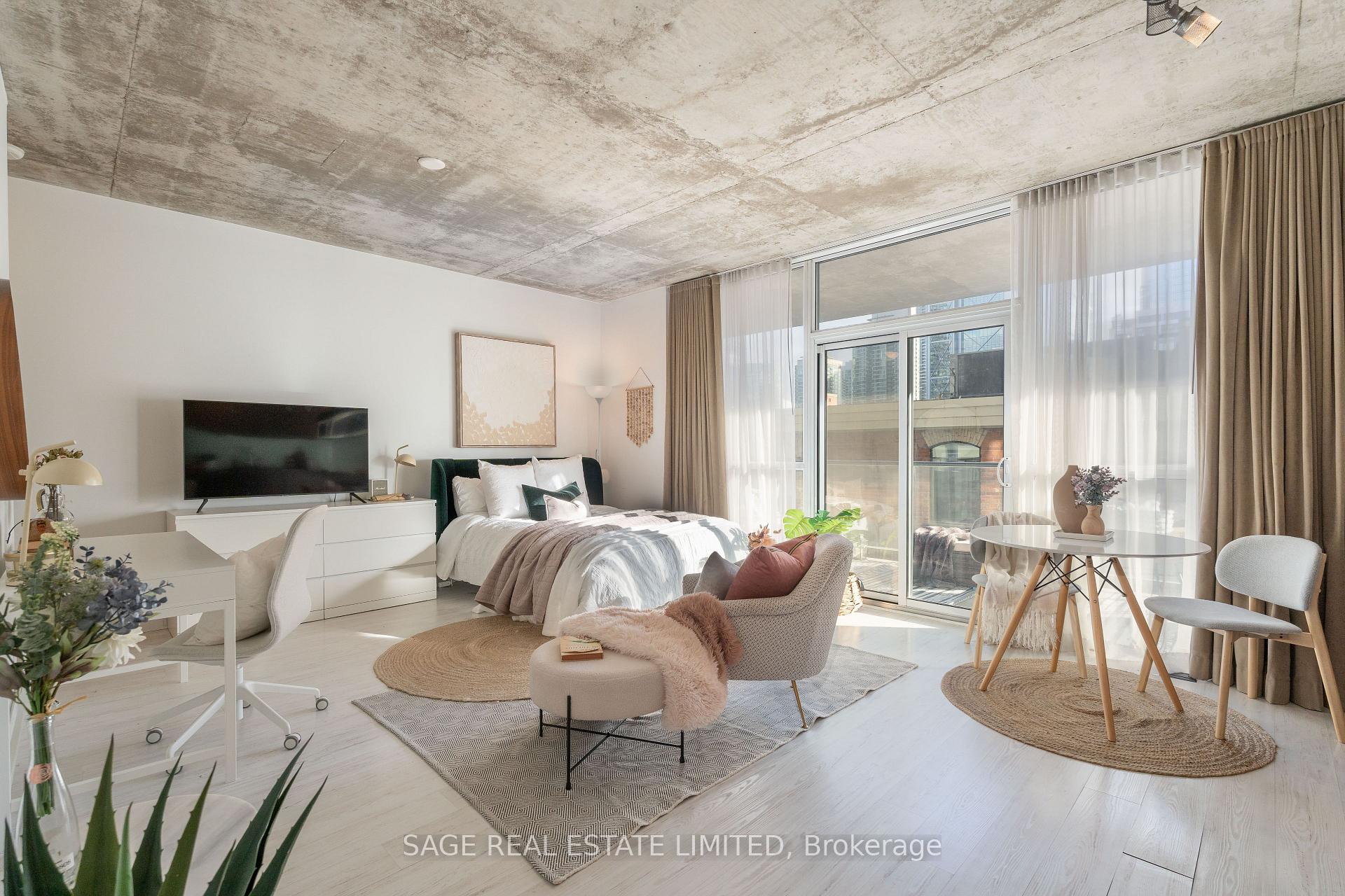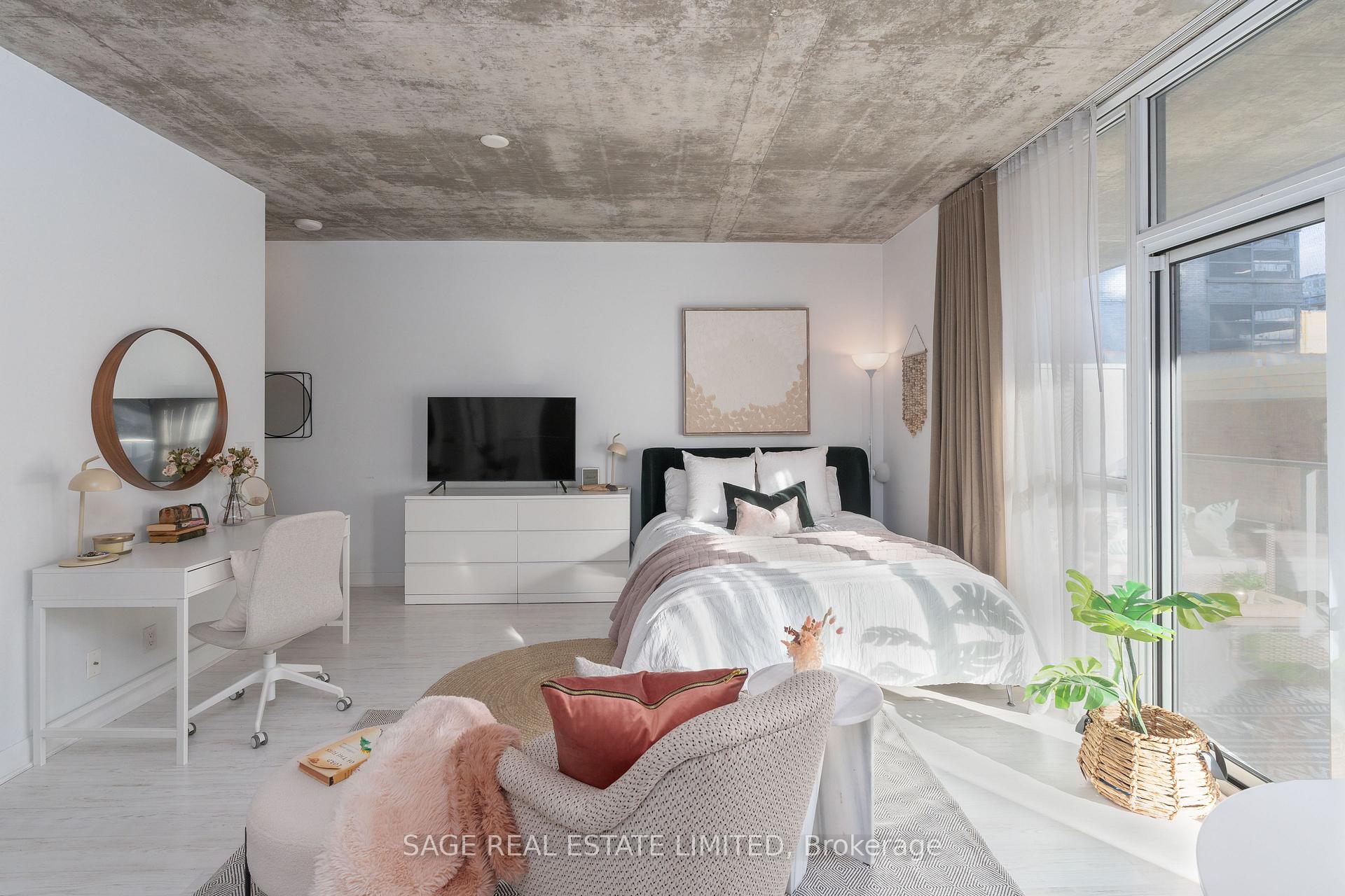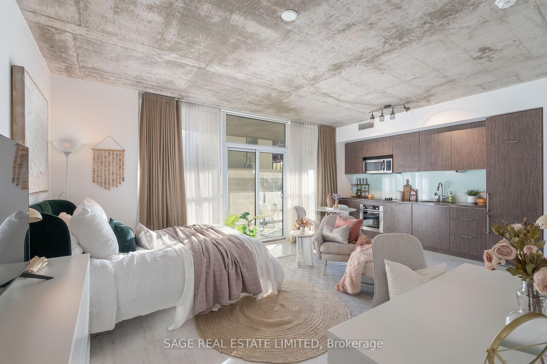 Minimalist, bright and spacious 475 Sqft studio apartment with full length balcony and ample ensuite storage at Victory condos. This abode boasts floor-to-ceiling windows, custom window coverings with blackout blinds, stone kitchen counters with integrated and stainless steel appliances (fridge, stove, built-in dishwasher, microwave/range hood). Oversized laundry room with storage and custom built-in closets. Extensive building amenities include a concierge, party room, gym and more. Photos from the previous listing