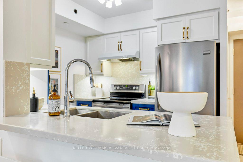 Step into this beautifully maintained 1-bedroom + den suite (670sqft) in sought-after Cranbrooke Village. The efficient, open layout maximizes space, with floor-to-ceiling windows that flood the living and dining area with natural light and showcase open views. The modern kitchen offers ample storage, a breakfast bar, and stylish blue cabinets. The bedroom has a large closet and full window, while the den is ideal for a home office or extra living space and includes a full wall of closets. Enjoy morning coffee or an evening beverage on you private balcony, relax or entertain on the rooftop BBQ terrace, stay active in the fitness room, or host friends in the elegant party room.Quiet yet connected, the condo is steps from shops, restaurants, Lawrence Plaza, parks, and community centres, with TTC transit nearby and quick access to Highway 401 and Allen Road. Bright, stylish, and move-in ready, this suite combines comfort, convenience, and a true sense of home.Low maintenance fees in this LEED Gold building make life easy and eco-friendly. Carpet Free!
