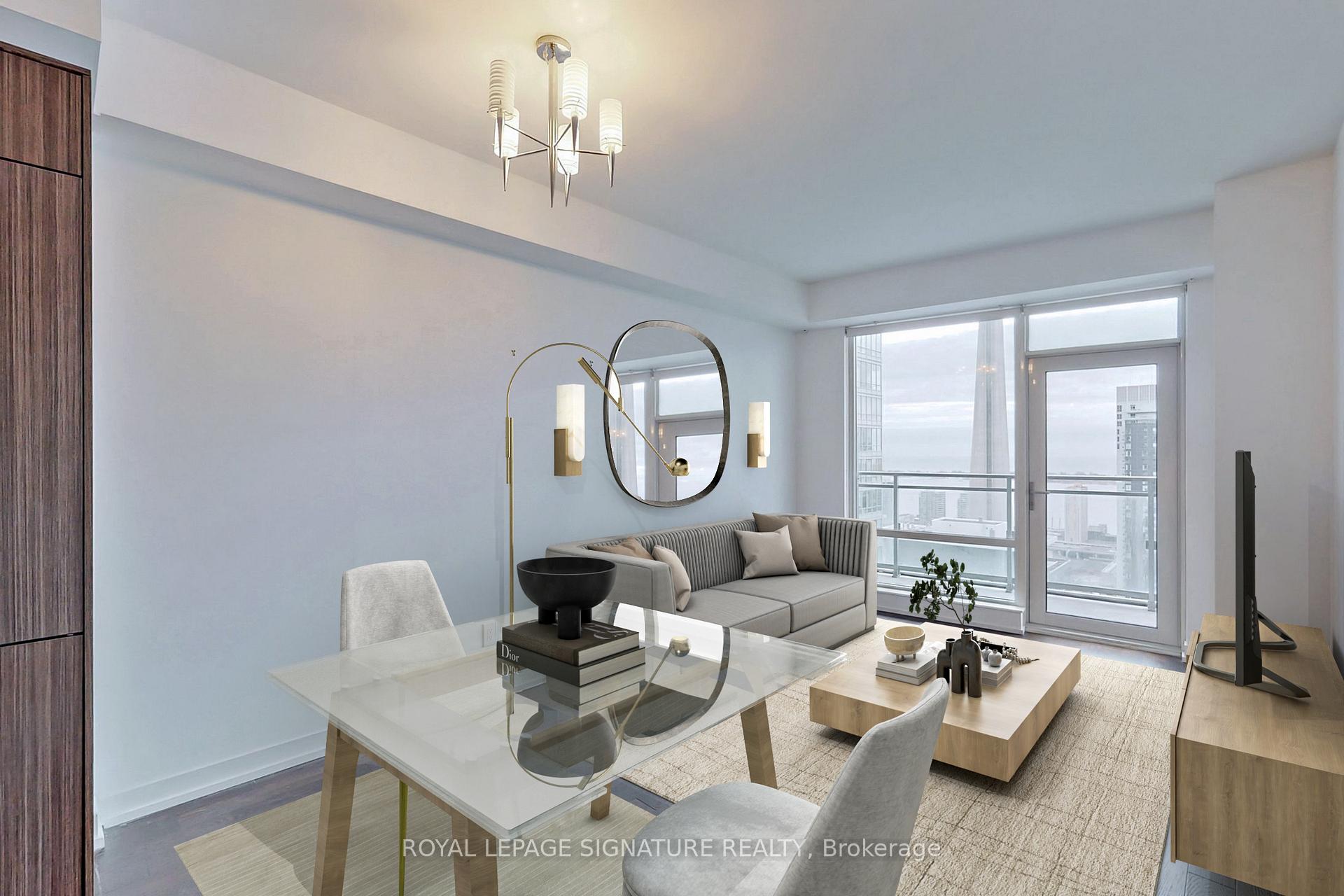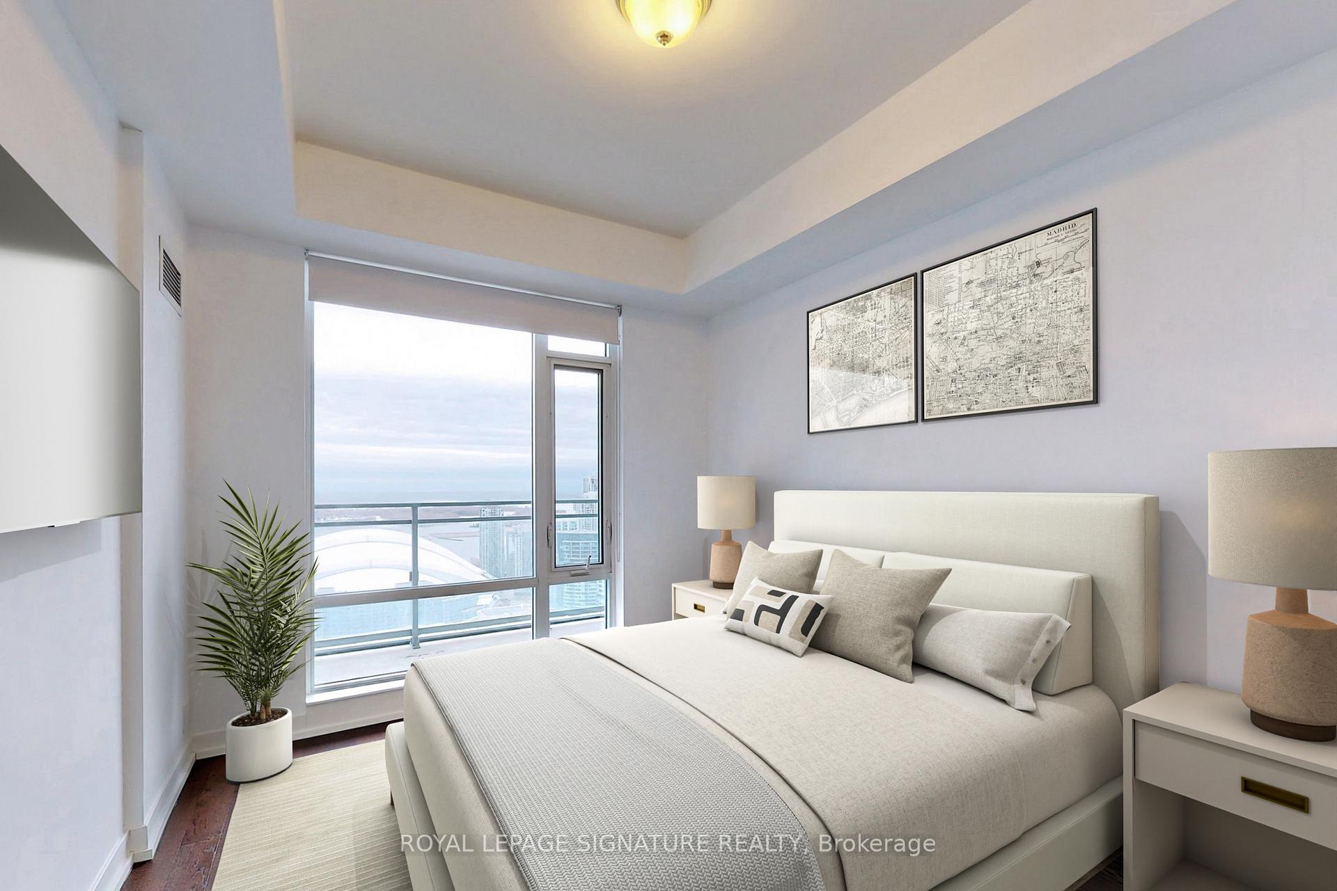 Discover urban elegance in this south-facing 1-bedroom unit at 21 Widmer St, nestled on the 40th floor in the heart of Toronto's Entertainment District. This open-concept unit boasts 9-foot ceilings, hardwood floors, a Juliette balcony, and a modern kitchen with quartz countertops and Miele appliances. The true highlight is the unit's breathtaking, uninterrupted view of the iconic CN Tower and Rogers Centre, framed by large windows that provide a dynamic backdrop of the city's skyline and Lake Ontario. The vibrant city lights at night enhance the allure of this spectacular vista. Residents enjoy premium amenities including a 35-seat cinema, party room, gym, basketball court, 24-hour concierge, and lounge, all surrounded by the city's finest dining, art, and nightlife, offering an unparalleled urban living experience.