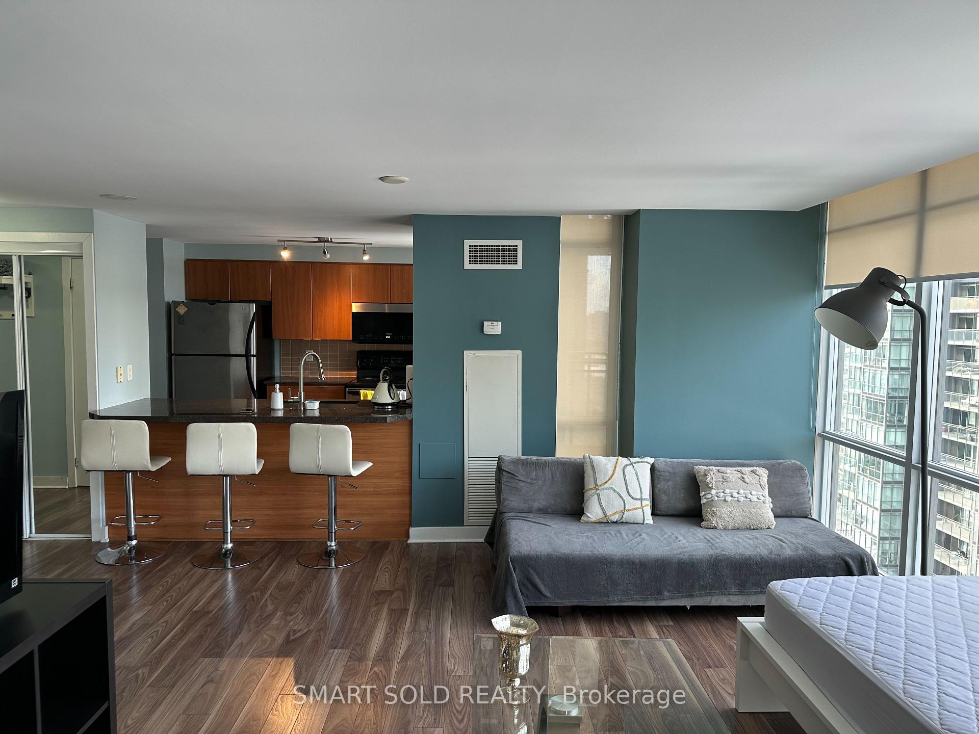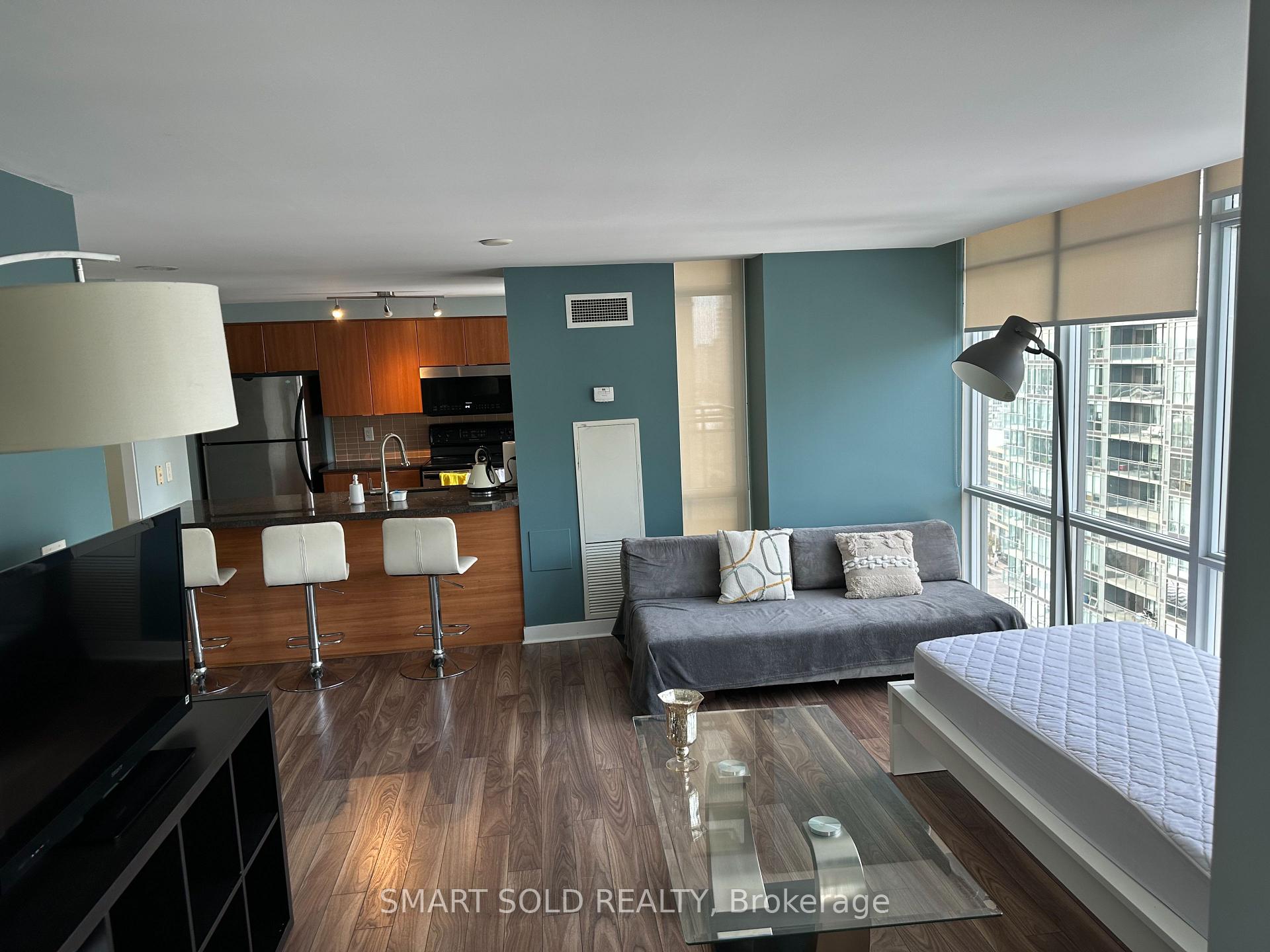 Experience elevated living in the heart of Toronto's vibrant Downtown Waterfront Community-where luxury meets convenience. This stunning 1 Bedroom + Den residence, Floor To Ceiling Windows In Every Room, Open Balcony, Premium Laminate Flooring Throughout; Custom Granite Counters W/Large Breakfast Bar, Closet Organizers In Both Closets, Ensuite Laundry, Residents enjoy access to world-class amenities and an unbeatable location just steps from theEntertainment and Financial Districts, iconic landmarks, and the best cafes, restaurants, andshops along the Harbourfront. Enjoy outstanding amenities, including an indoor pool, gym, billiards, media room, partylounge, and a 27th-floor sky spa with a hot tub and steam room. Visitor parking and guestsuites are also available. Includes 1 parking spot. A rare opportunity-don't miss your chance to call this remarkable home yours. Act fast!