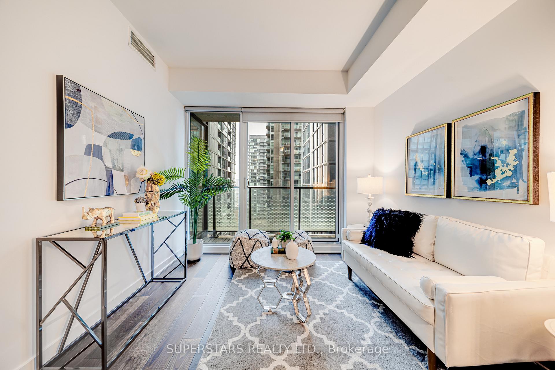 Welcome To This Bright And Efficient 1+1 Layout Unit Offers A Stylish Urban Retreat With 9Ft Ceiling And Floor-To-Ceiling Windows That Fill The Space With Natural Light. Fresh Paint Throughout, The Open-Concept Living Area Flows Seamlessly To A Private Balcony, Perfect For Unwinding Above The City. The Modern L-Shaped Kitchen Features Sleek Finishes, Built-In Appliances, Backsplash, And Under-Cabinet Lighting. Spacious Bedroom Includes A Large Double Closet. The Open Den Provides An Ideal Workspace. The Well-Appointed 4Pc Bathroom Completes This Comfortable And Contemporary Home. Steps From World-Class Dining, Entertainment, Transit, And The Financial And Entertainment Districts, This Home Places The Best Of Toronto Right At Your Doorstep.