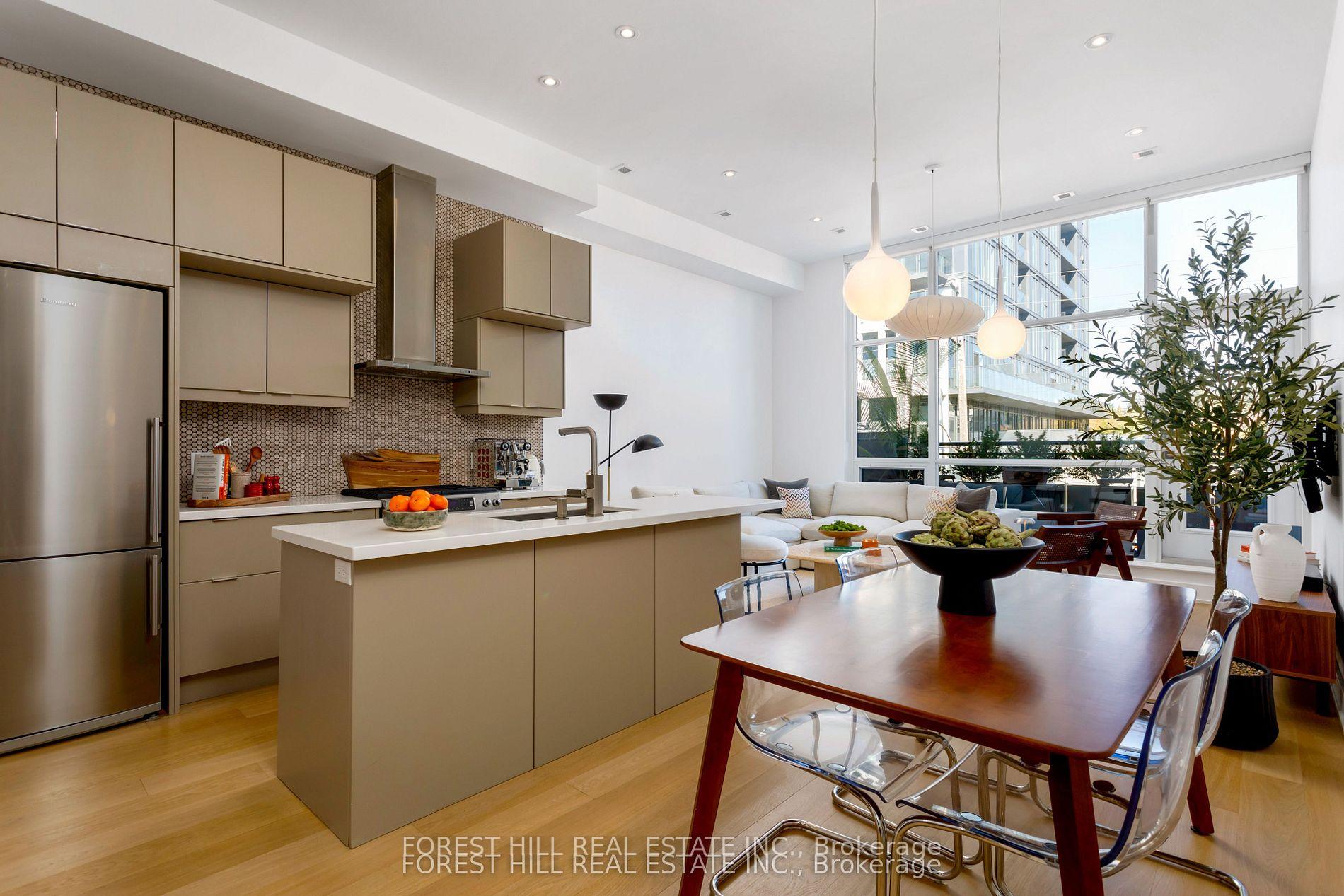 Welcome to unit 204 at the Annex Loft Houses. This well appointed 3-storey condo totaling approximately 1,548 square feet of interior and exterior space offers spacious, thoughtfully designed living space with quality upgrades throughout, including wide-plank white oak hardwood floors and upgraded light fixtures. 11 foot floor-to-ceiling windows fill the main floor with natural light, complementing the modern kitchen. Balconies on every level and a private rooftop terrace with gas line provide excellent outdoor entertaining and lounge space. Primary bedroom with spa-inspired 5-piece ensuite. Designed for comfortable everyday living and easy entertaining. Ideally located in the Annex/Seaton Village steps to transit, parks, coffee shops, Summerhill Market, Loblaws, Fiesta Farms and other neighbourhood gems.