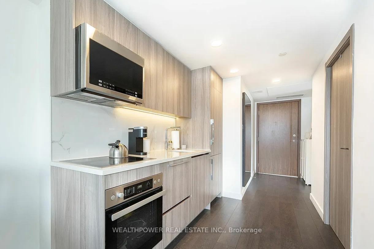 Concord Central is a landmark 52-storey residence in downtown Toronto, known for its cutting-edge technology and prime location. This Beautiful and luxurious 2-bedroom, 1-bathroom condo featuring unobstructed west-facing views of the lake and city. Offering 608 sqft of interior living space plus a 70 sqft heated balcony, this suite combines comfort with modern elegance. The unit is appointed with top-of-the-line built-in Miele appliances, upgraded kitchen storage solutions, premium Blum cabinetry hardware, and a Miele washer and dryer. The bathroom showcases high-end Kohler and Grohe fixtures. Built-in closet organizers maximize storage, while floor-to-ceiling windows fill the space with abundant natural light, creating a bright and spacious layout. Residents enjoy exceptional amenities, including 100% Wi-Fi connectivity, state-of-the-art indoor and outdoor pools, an outdoor theatre, conference rooms, a fully equipped fitness centre, EV parking, and refrigerated parcel storage. Situated in Toronto's vibrant tech hub and Entertainment District, you are steps to transit, shopping, and dining. Just minutes from the CN Tower, Rogers Centre, Scotiabank Arena, Ripley's Aquarium, the PATH, Union Station, and Toronto's Harbourfront.