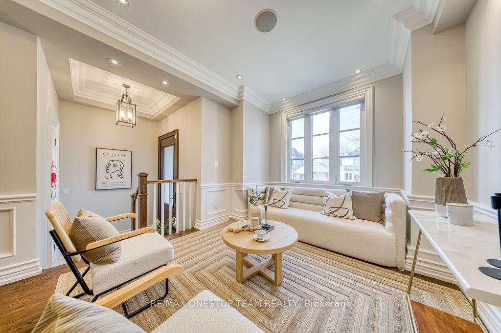 Exceptional value in this spacious, newer luxury home, ideally located just a 5-minute walk to the TTC subway, Yonge Street, parks, and within the highly sought-after Bedford Park school district. This elegant, extremely well maintained home features soaring ceilings, coffered ceilings, crown mouldings, wainscotting, and hardwood flooring throughout, complemented by custom window blinds, stair lighting, built-in speakers, and extra side windows that fill the space with natural sunlight. The large, modern kitchen is equipped with JennAir appliances, stone countertops, the refreshed cabinets, perfect for both everyday living and entertaining. Retreat to the grand primary bedroom with a private balcony and a spa-inspired ensuite complete with heated floors and body jets.The walk-up basement offers excellent additional living space, featuring 10-foot ceilings, large windows, a stone fireplace, an additional bedroom, and a full bathroom-ideal for extended family or potential rental use.Ample parking is available with a multi-car driveway, and the beautifully landscaped front and back yards feature turf and interlock for low-maintenance outdoor enjoyment.