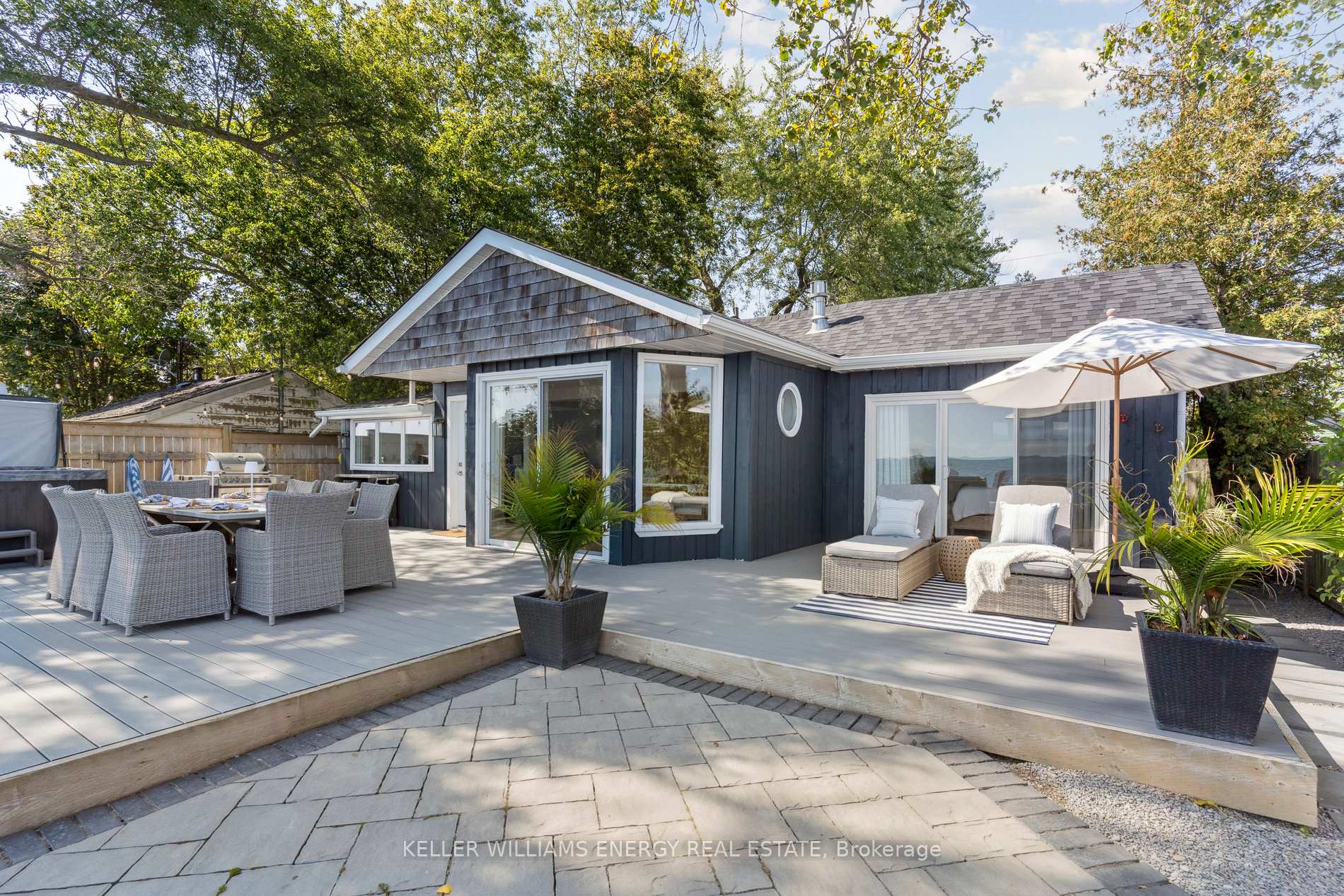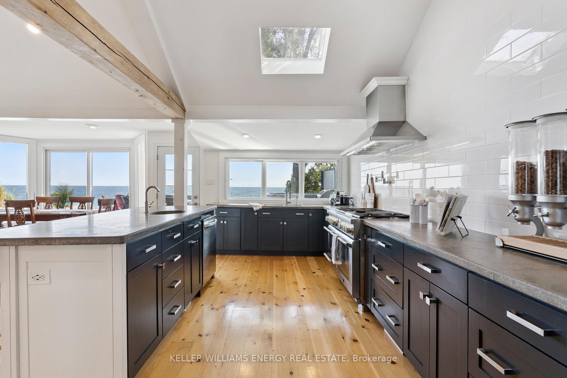Awaken to sweeping views of Lake Ontario from this elegant waterfront bungalow, set on a rare 300-ft-deep lot with over 40ft of private lakefront. The vaulted great room features a stunning floor-to-ceiling stone fireplace, cathedral ceilings, and 12-ft sliding glass doors all connecting seamlessly to the expansive lakeside TREX decking. A chefs kitchen complete with Thermador appliances, convenient pot filler, modern counters, elegant skylight windows, and a pass-through window, that truly bring the sound of waves crashing on the shoreline, inside. The primary suite offers a spa-like ensuite with heated marble floors, walk-in closet, and direct walkout to the deck. A separate wing includes a full second kitchen, family flex room with expansive sliding glass doors to the courtyard, a bedroom, and 3-pc bathideal for multi-generational living. The detached 2 car garage features an insulated loft apartment with a kitchen, 3-pc bath, fireplace, and walk-in closet. Landscaped grounds include a hot tub, exquisite French inspired gardens, and multiple outdoor living areas, all just minutes from downtown Bowmanville, Hwy 401, and under an hour to Toronto.