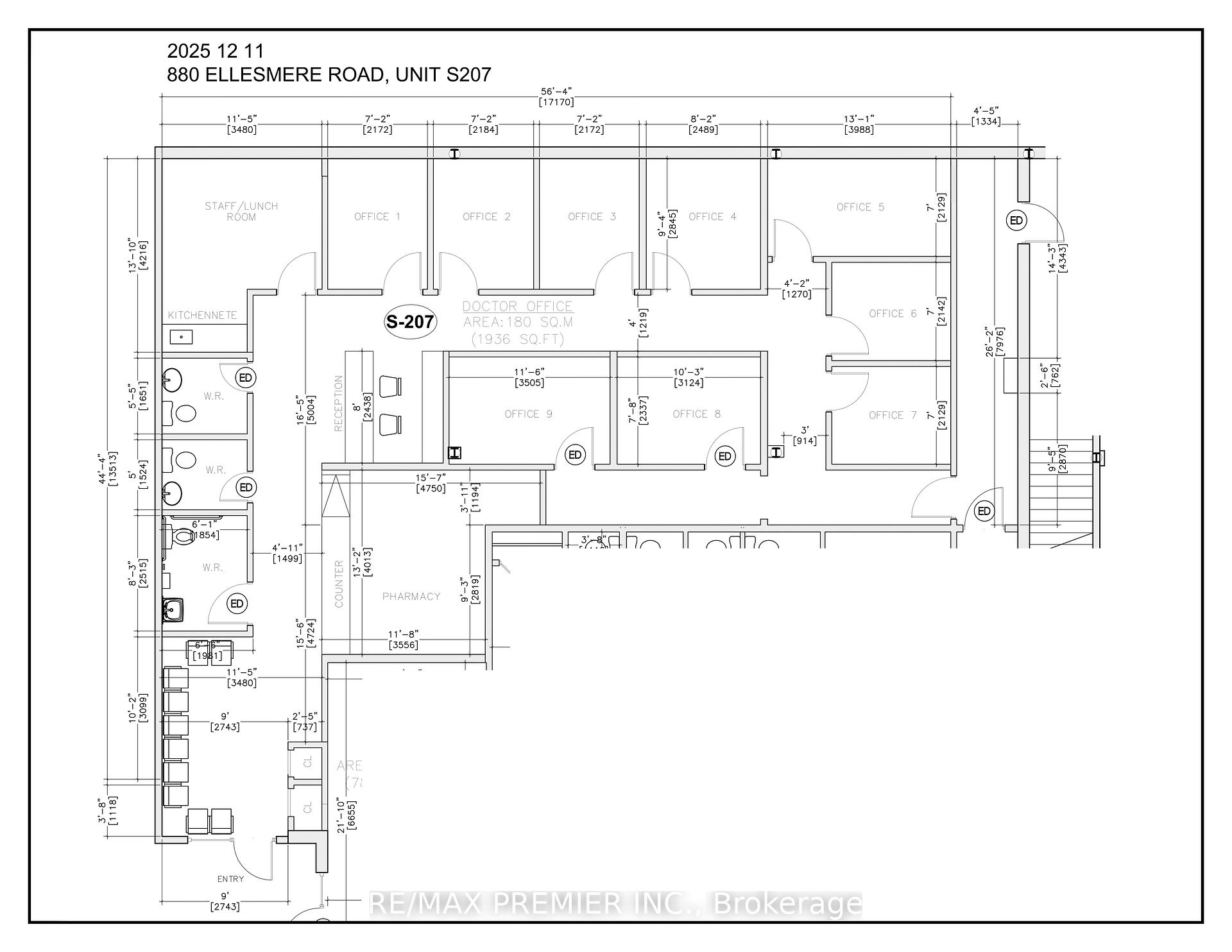 Prime Main-Floor Retail / Professional Office Opportunity. Ideal for Doctor's Office with Pharmacy. 9 Offices + Pharmacy. Excellent main-floor space ideal for professional office or retail use, offering 1,936 sq. ft. (Unit S207) with the option to combine with Unit S205 for a total of 2,721 sq. ft. Floor Plans Attached. Located in a high-traffic plaza with outstanding street-front exposure at the strategic corner of Kennedy Road and Ellesmere Road, this well-established trade area is surrounded by a diverse mix of tenants and high-density condominium towers and residential townhomes, ensuring consistent foot and vehicular traffic. Key Features: Prominent front signage and pylon signage available, Excellent ingress and egress from Ellesmere Road, Strong visibility with pedestrian and vehicular exposure, Ample surface and underground parking, Elevator access to second- and third-floor offices, Quick access to Highway 401Convenient access to TTC transit and nearby amenities. An ideal opportunity for businesses seeking visibility, accessibility, and a strong surrounding customer base.