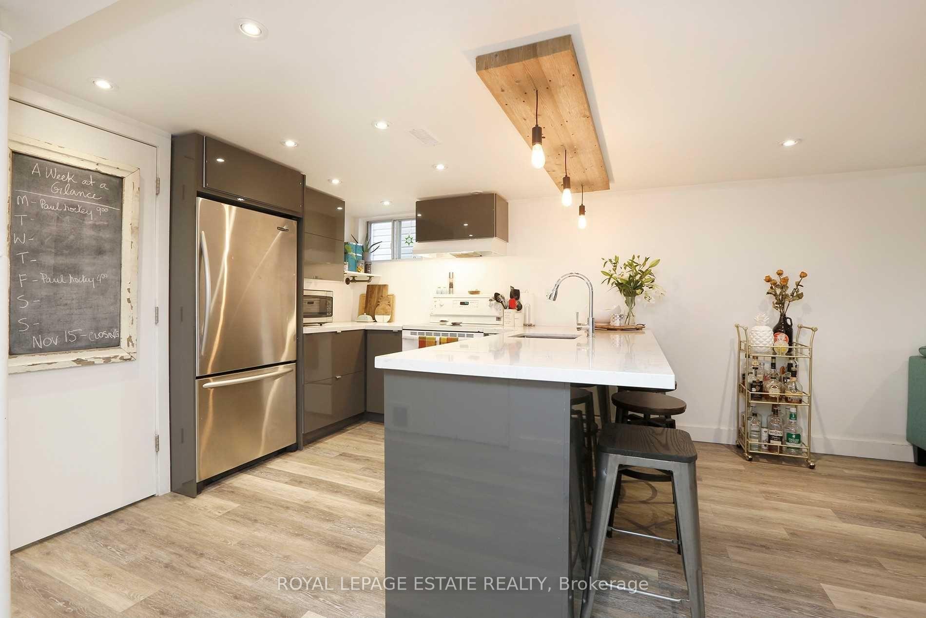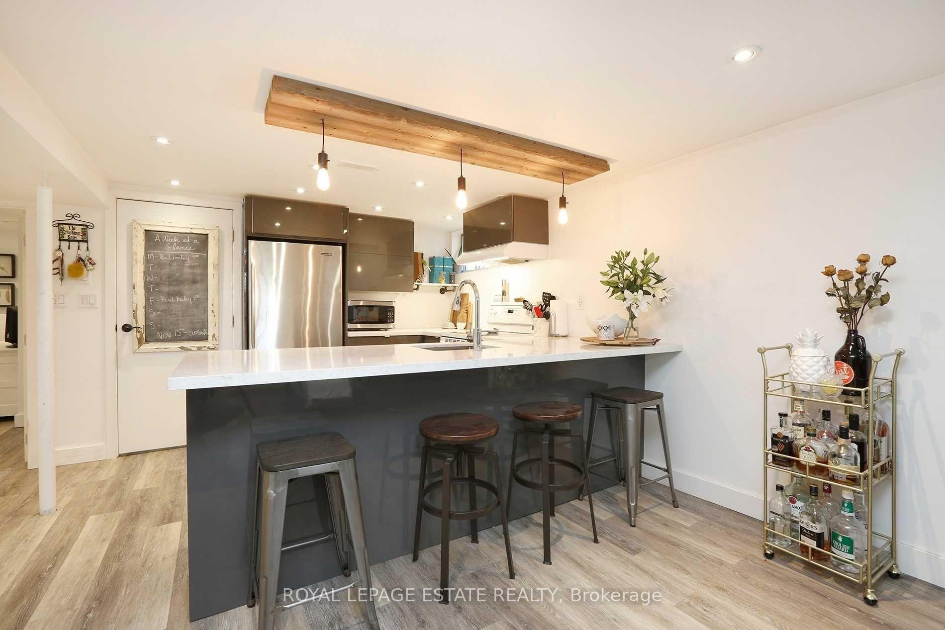 Beautifully renovated two-bedroom basement apartment located on a quiet residential street just north of Kingston Road. This well-finished space offers modern upgrades, clean design, and practical living in a convenient Scarborough location.The apartment features pot lights throughout, keeping the space bright and comfortable. The kitchen has been updated with new cabinetry, quartz countertops, and a custom light fixture that adds character without feeling overdone. The bathroom is a standout, finished with heated marble floors, granite countertops, double sinks, and a glass walk-in shower.Everyday amenities including shops, cafés, restaurants, grocery stores, and services are close by along Kingston Road. Nearby parks and green spaces provide options for walking, jogging, or cycling, with Scarborough Bluffs parks and waterfront trails easily accessible by bike or short drive.Transit is convenient with TTC bus routes along Kingston Road, offering straightforward connections to subway stations and the rest of the city. The area is established and residential, with access to schools, community centres, and recreational facilities. Shared laundry facilities included. Kitchen equipped with refrigerator, stove, microwave, and dishwasher. Utilities are included; tenant is responsible for internet, phone, and cable services if desired. Unit features built-in shelving, all existing electric light fixtures, heated marble bathroom floors, and granite bathroom countertops. Tenant has use of the backyard and BBQ. Separate entrance provided. Short-term rentals, including Airbnb, are strictly prohibited.Photos are from when the unit was previously occupied.