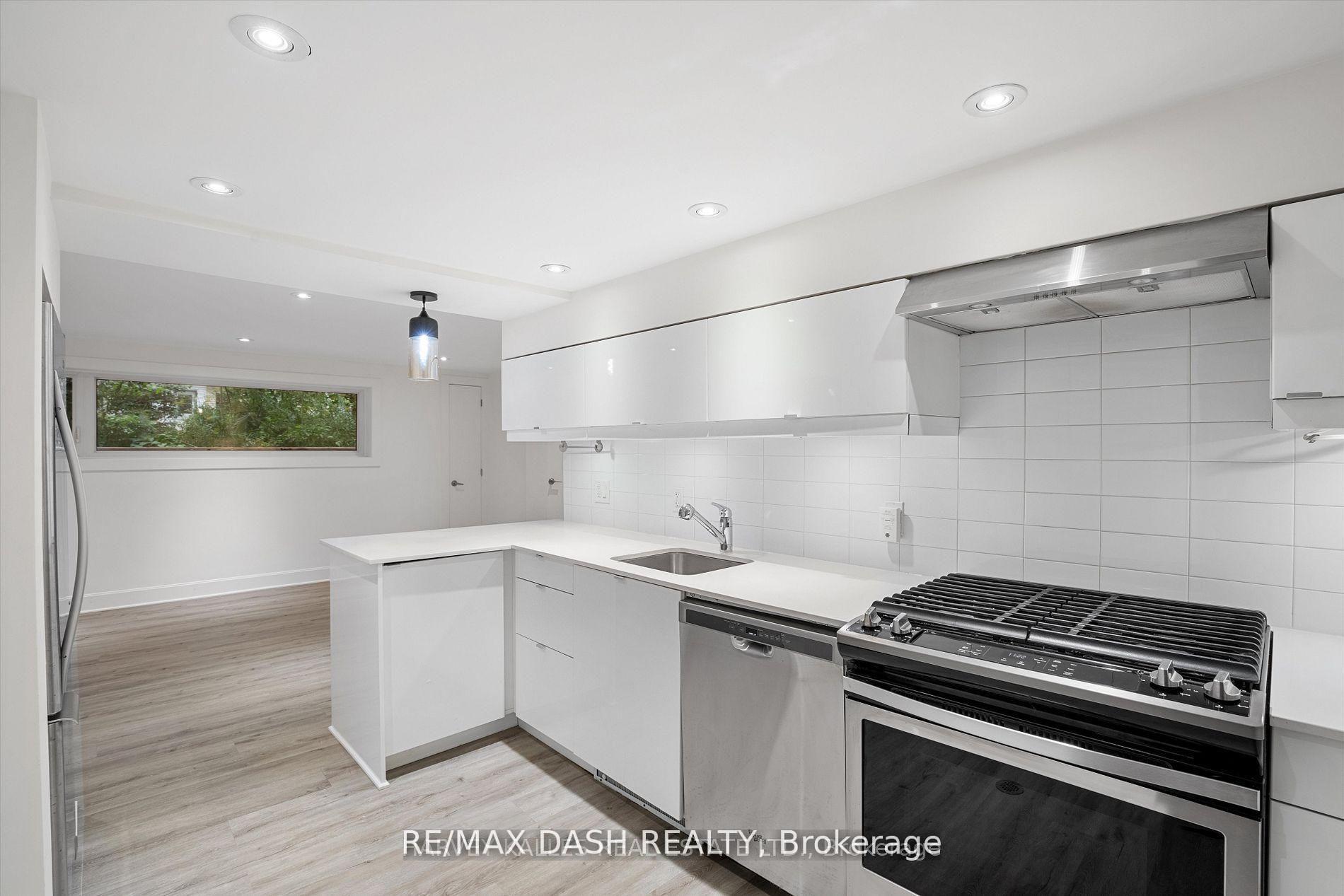 Beautiful lower-level unit with two Bedrooms and one full bathroom. This open-concept design features two entrances, an expansive dining/living area, a sleek modern kitchen with high-end stainless steel appliances, including a gas stove, and dishwasher. Enjoy the shared interlock patio in the front yard and the convenience of in-area laundry facilities. Individual temperature controls, wall-mounted air conditioning, abundant natural light and contemporary finishes throughout. Pets are welcome. Utilities and parking are extra.