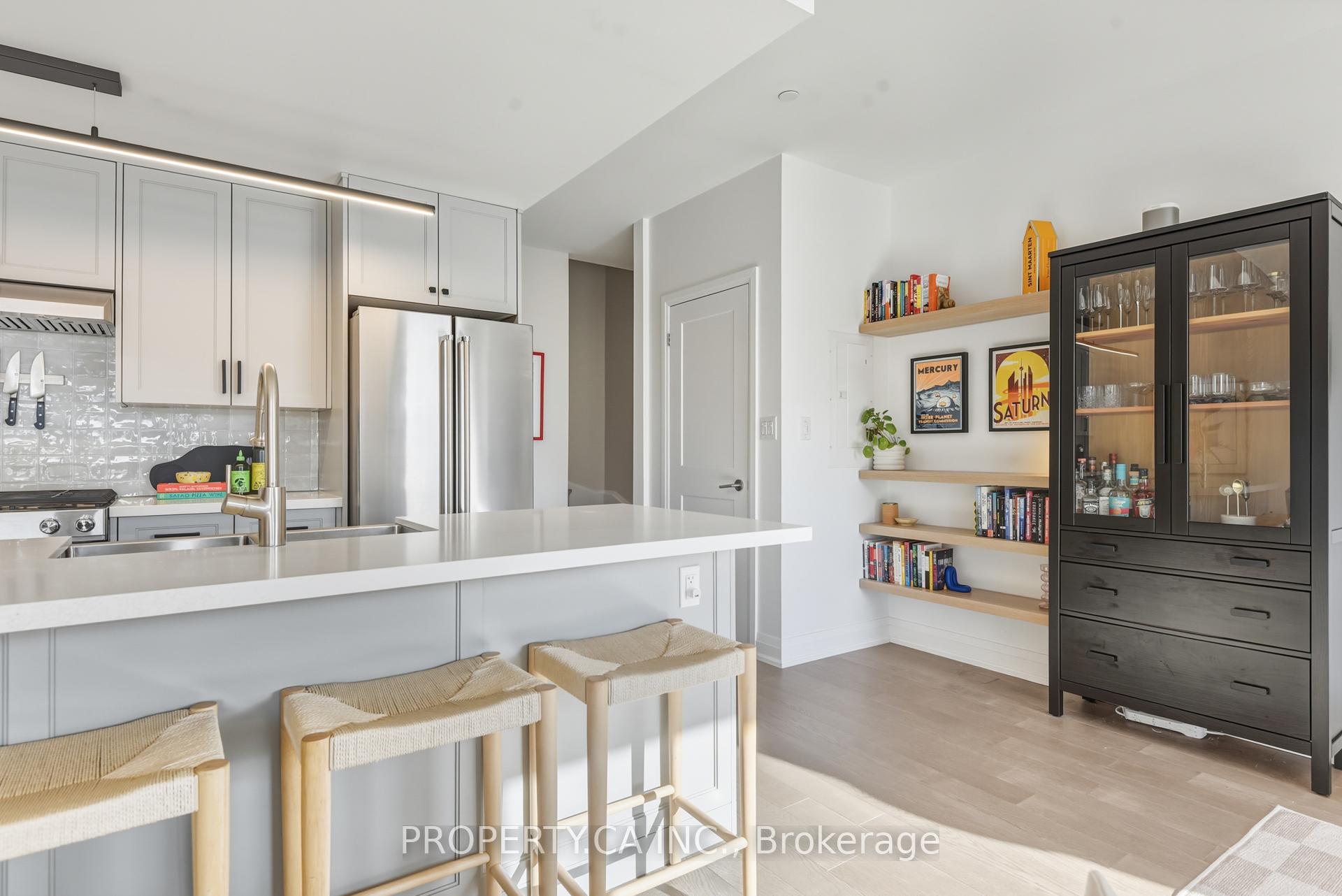 Tucked into a boutique community of just 22 luxury townhomes, this bespoke residence delivers the perfect blend of Leslieville energy and beachside calm. Bright and south-facing, this 1,280 sq ft home is designed for effortless living-featuring soaring ceilings, engineered hardwood throughout, beautifully updated appliances and lighting, and high-end finishes that make it truly one of a kind. At the heart of the home, a gourmet kitchen with quartz countertops, a gas range, and an oversized centre island flows seamlessly into the dining and living spaces-ideal for entertaining. Oversized windows and two additional balconies flood the home with natural light, while the showstopping massive private rooftop terrace steals the spotlight with skyline and lake views, a gas line for grilling, and a custom shade sail for sunny afternoons. Just steps to History music hall, minutes to Line 2 (Coxwell Station), and only a hop, skip, and a jump into the city (or down to the beach), you're surrounded by parks, top restaurants, and waterfront trails-putting the very best of the east end right at your doorstep. Located in the Bowmore PS and Monarch Park CI catchments. Bonus conveniences include a heated driveway to underground parking, a dog wash station, and extra locker storage-so every day here feels elevated, effortless, and perfectly connected.