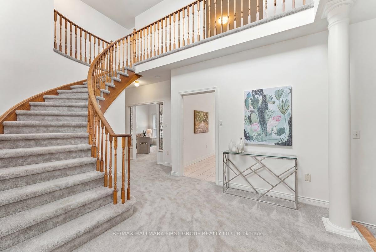 Welcome to 1633 Valley Ridge, set on a premium 60 x 148* ft lot in a spectacular family oriented neighbourhood; This elegant home welcomes you with a grand foyer featuring double-door entry and 9ft ceilings throughout the main floor. A private office with vaulted ceilings and double French doors provides an ideal work-from-home space. The sunken living room with 10ft ceilings offers warmth and character with a gas fireplace, while the formal dining room impresses with coffered ceilings - perfect for hosting. The bright, eat-in kitchen features abundant cupboard and counter space and opens to a comfortable family room with a second gas fireplace. Main-floor laundry adds convenience with direct garage access and a separate side entrance. The oversized primary retreat showcases double doors, his-and-her walk-in closets, and a spacious ensuite with a separate shower and jacuzzi tub. A stunning secondary bedroom with vaulted ceilings includes two double closets and a Jack-and-Jill bathroom shared with the third bedroom. A generously sized fourth bedroom with 4-piece ensuite and double closets easily accommodates a growing family. The partially finished basement offers a bachelor apartment with separate walk-out access - ideal for extended family or additional income potential. Fantastic location within walking distance to Rouge Valley trails and easy access to hwy 401, 407, and downtown Toronto! Recent updates include newer shingles 2018, furnace 2019, and air conditioning. **Carpet colour has been altered in some photos - QUOTE FOR NEW HARDWOOD ON FIRST FLOOR including stair nose; $15,854 + HST, NEW CARPET ON SECOND FLOOR; $7,952+HST - quoted by Summit Flooring**