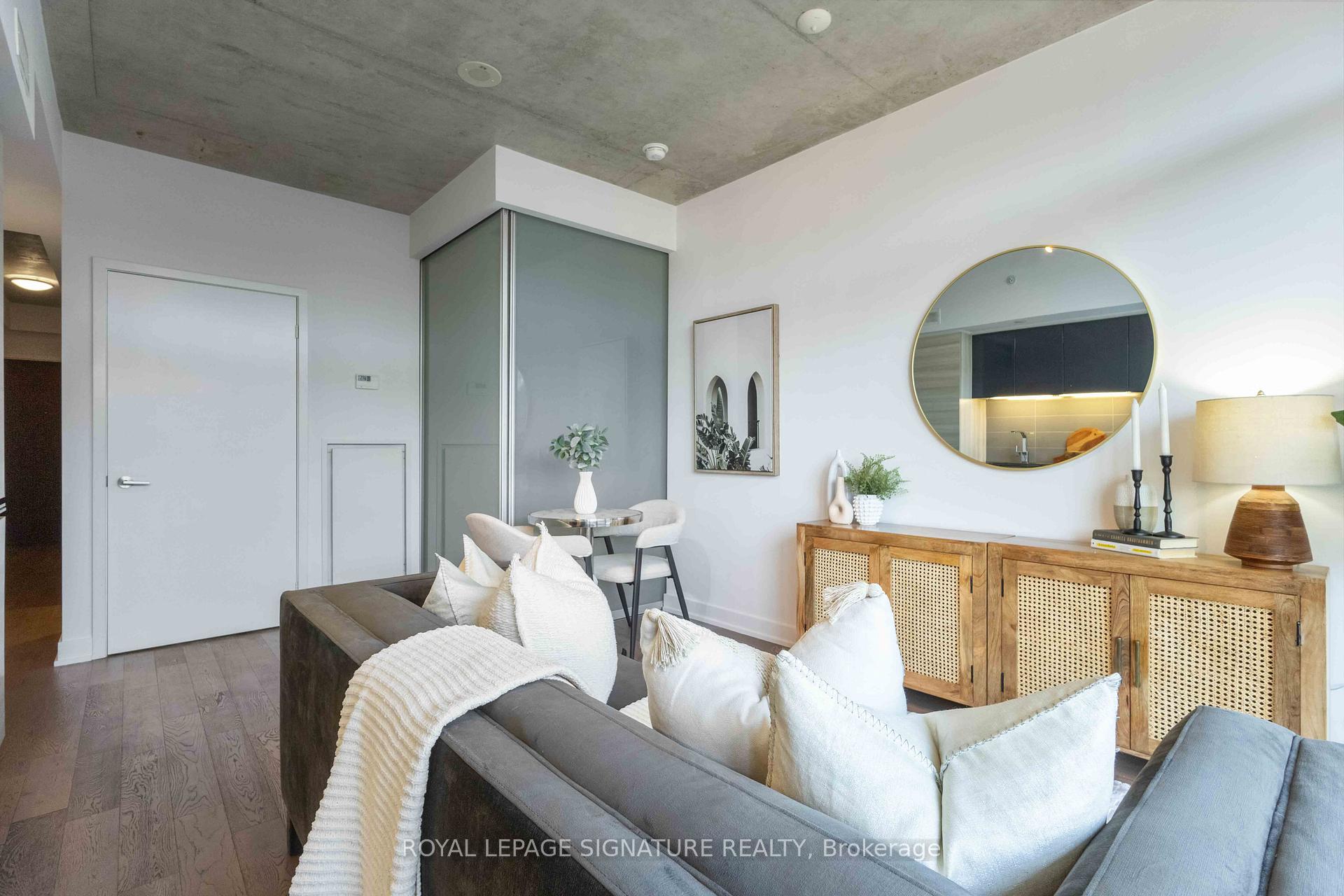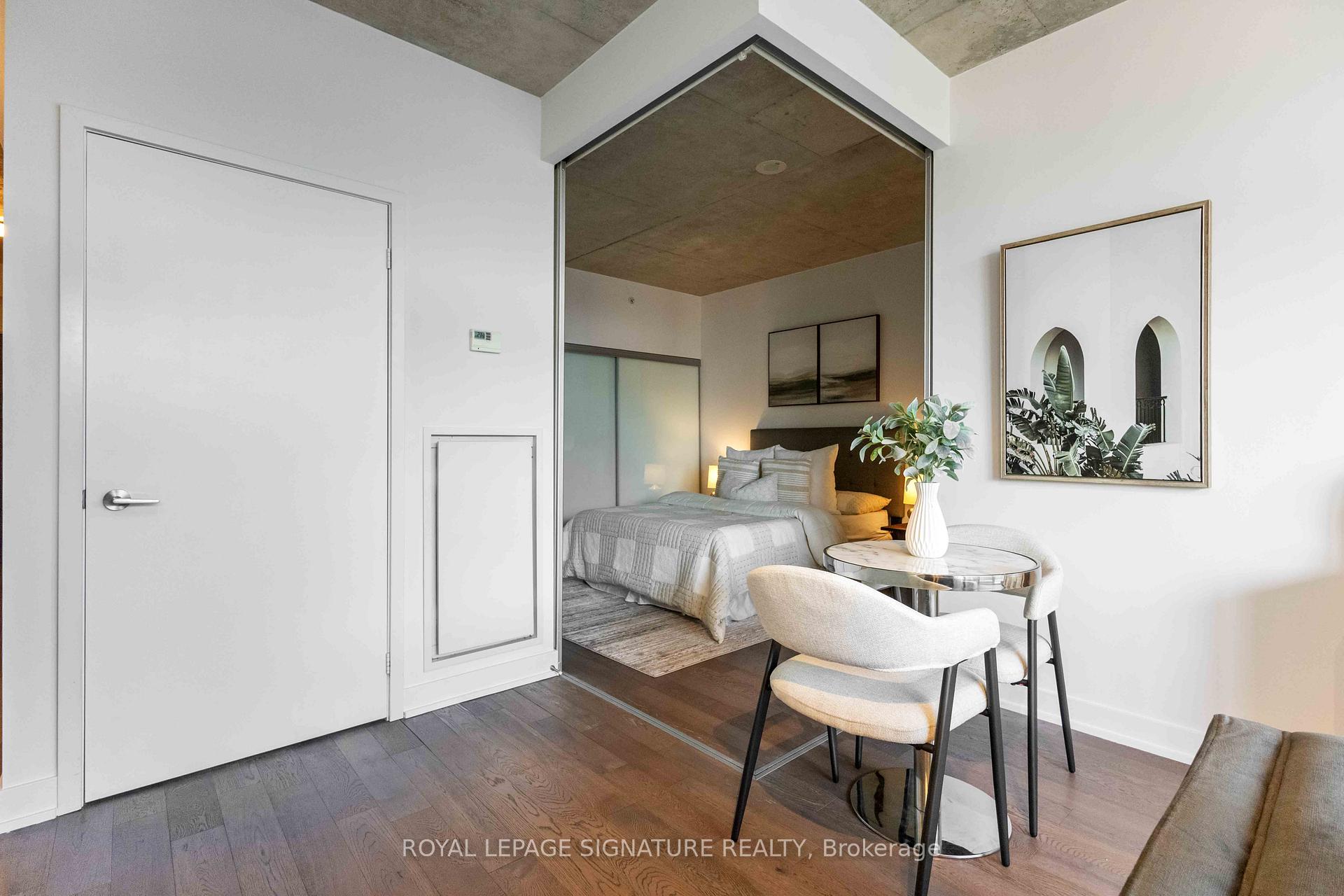 Attention first-time home buyers and savvy real estate investors! Welcome to this bright and modern 1-bedroom, 1-bathroom condo for sale in the heart of Leslieville, offering exceptional lifestyle appeal and strong rental potential. This carpet-free condo features floor-to-ceiling windows, filling the space with natural light, and a functional open-concept kitchen ideal for everyday living and entertaining. The generously sized bedroom comfortably fits a king-size bed and includes wall-to-wall closet space for ample storage. Step outside to your private balcony, perfectly positioned to enjoy peaceful morning light and seamless indoor-outdoor living. Located in the pet-friendly Carlaw building, home to Crow's Theatre and the popular Piano Piano restaurant, residents enjoy premium amenities including a 24-hour concierge, fully equipped fitness centre, and a rooftop terrace with BBQs and breathtaking city views. This condo is steps to Leslieville's best cafés, restaurants, and shops, including Dineen Coffee, Bonjour Brioche, Good Neighbour, and more. With easy access to transit, parks, and downtown, the location is unbeatable.