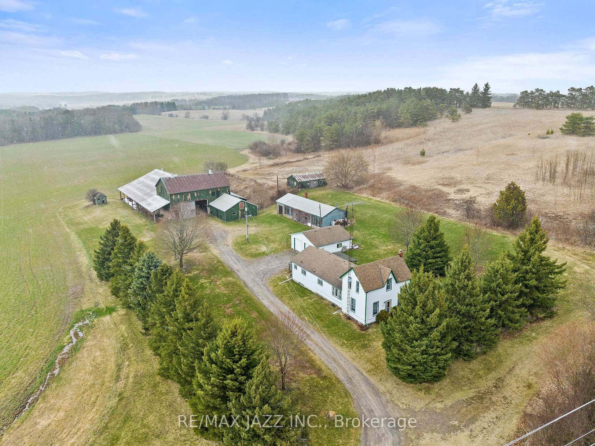 Set on 97.921 sprawling acres of scenic countryside, this picturesque 1871 farmstead offers a rare opportunity to own a piece of rural paradise with incredible potential. Abundant water source on the property with live flowing stream that runs through which can be used for irrigation of food crops! The charming 1.5-storey main house offers four bedrooms and two full kitchens, one on the main floor and one in the basement, making it possible for multi-generational living or future rental possibilities. The upper level offers a cozy den and additional bedroom in a thoughtfully designed upper-level addition. Built on a solid stone foundation, the home's water is fed by a natural stream located on the property, adding to its authentic country character. A fully serviced detached bachelor layout Bunkie, complete with its own kitchen, bathroom, water, and separate septic system, provides the perfect setup for guests or possible rental income. The property also includes a detached 2-car garage, a practical toolshed, and a spacious barn, all with hydro, offering endless space for equipment, hobbies, or agricultural use. Whether you're dreaming of a hobby farm, income property, or simply a peaceful place to call home, this unique offering delivers space, charm, and functionality across nearly100 acres of opportunity.