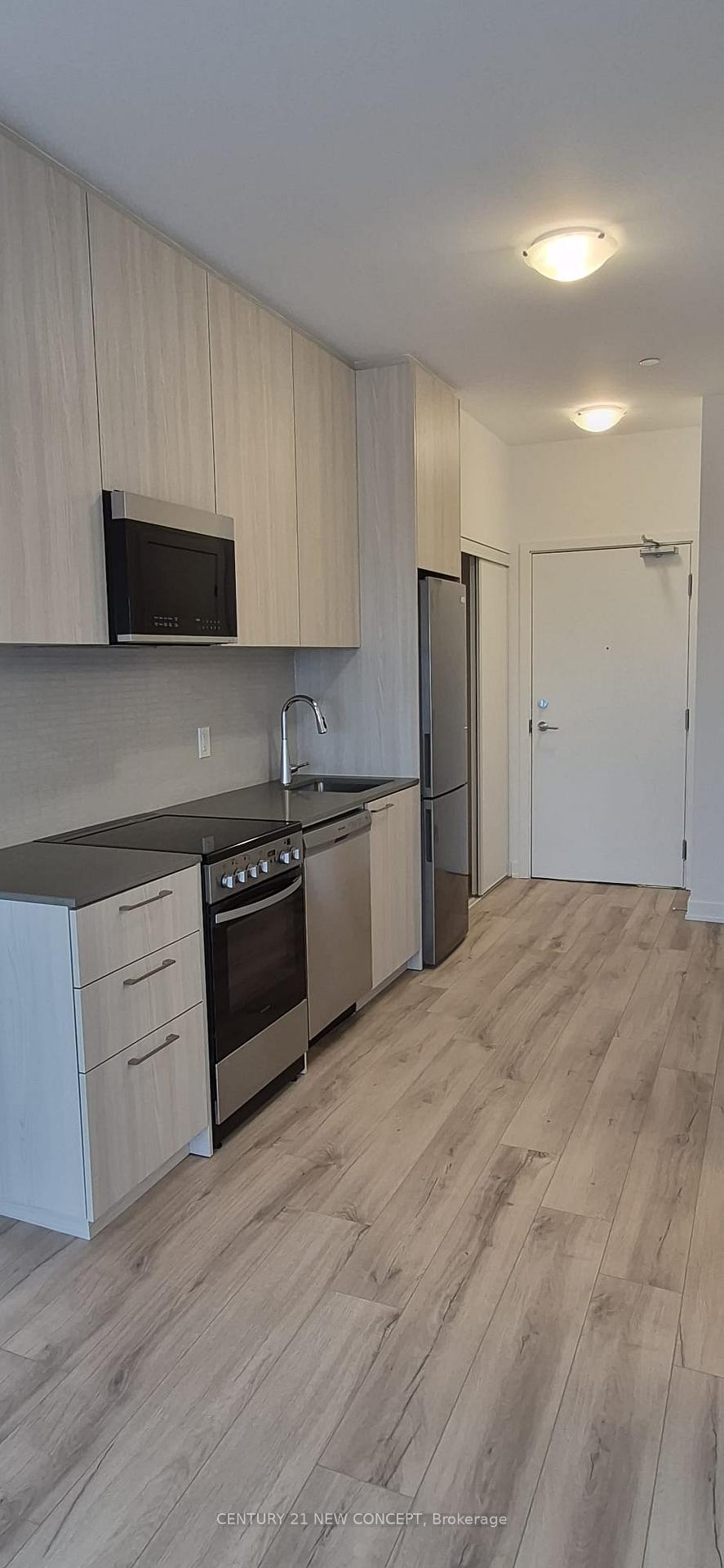 Welcome to The Narrative - a never-occupied condo in Toronto's desirable Rouge community. This bright, open-concept suite features large windows, smooth ceilings, and a smart layout with walk-out to a private balcony. Has the option of coming furnished with a bedroom set - living room set, including a 52" TV. The modern kitchen includes quartz countertops, ample cabinetry, and brand-new stainless steel appliances. The spacious bedroom offers great storage, and the unit includes a contemporary 3-piece bathroom and in-suite laundry for added convenience. One exclusive parking space and one locker are included. Enjoy premium building amenities such as 24/7 concierge, fitness centre, yoga studio, co-working lounge, party and games rooms, children's play area, outdoor terrace with BBQ area, visitor parking, and fibre optic internet. Excellent location with quick access to Hwy 401, Rouge Hill GO, TTC transit, shopping, schools, and Rouge National Urban Park. Ideal for professionals or students seeking modern, convenient living - Live Where you're Inspired!