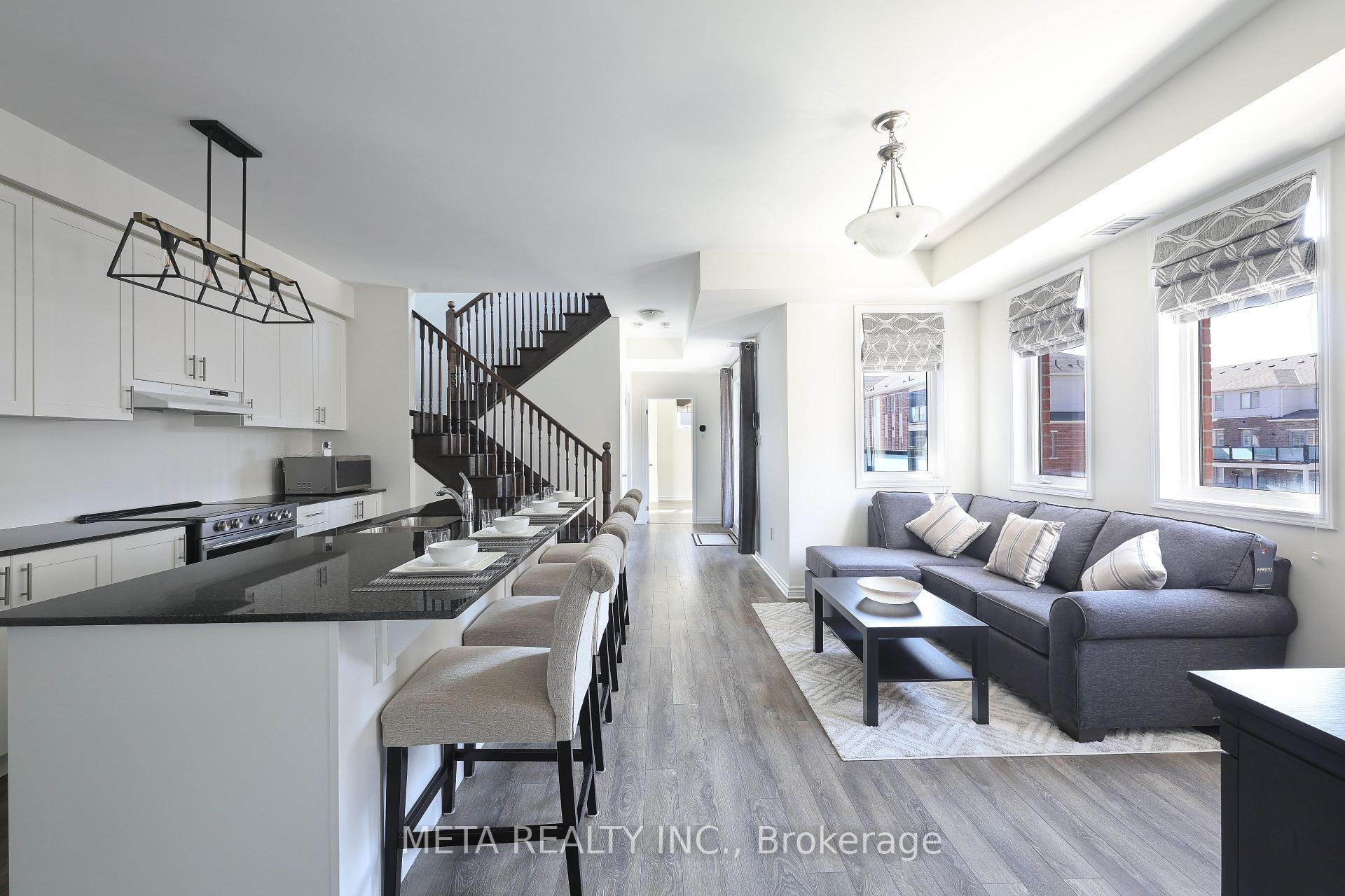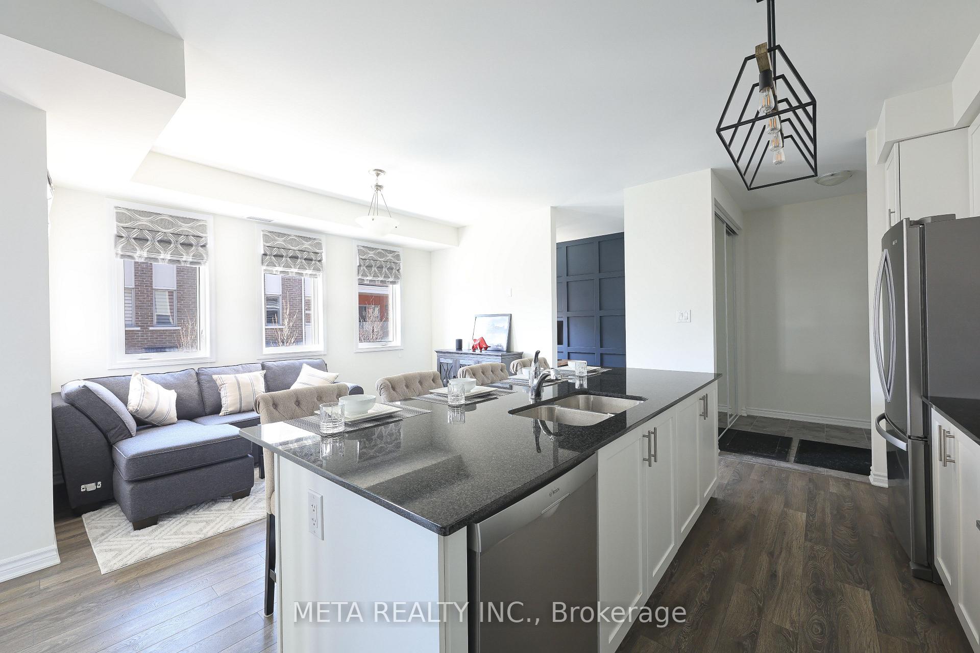 Welcome to this rarely offered premium-sized 1,794 sq. ft. stacked condo townhome in Pickering's sought-after Seaton community, built by Mattamy. This corner unit offers a functional 3-bedroom plus builder-plan home office and 3 bathrooms, thoughtfully upgraded for modern comfort, generous living space, and exceptional commuter convenience. Main floor features an inviting open-concept design with 9ft ceilings that create a bright, airy atmosphere. The upgraded kitchen stands out with its large island, stainless steel appliances, contemporary cabinetry, and ample storage-ideal for daily living and entertaining. This space flows into the dining and living areas and opens to a private balcony. Main floor features an office, offering privacy for remote work or study. A rare main-floor bedroom with a walk-in closet provides valuable flexibility for guests or multi-generational living. The upper level includes two spacious bedrooms, each with a private ensuite and walk-in closet. The primary suite offers dual walk-in closets. A dedicated laundry room with a sink and storage enhances functionality, and a second private balcony completes the floor. The property is minutes from Highways 401, 407, 412, and the Pickering GO Station, ensuring seamless connectivity across the GTA. With highly rated public schools nearby, this neighbourhood offers an ideal environment for your children to learn and grow. Grocery stores, parks, and scenic trails are all close by, with the Seaton community continuing its strong growth. Additional upgrades include smart lighting controls, an Ecobee smart thermostat, premium main-floor lighting, and efficient under-stair storage. Parking features an EV-ready garage plus a private driveway. Condo fees cover snow removal for pathways and roads. This turnkey home blends contemporary design, functional enhancements, and an unbeatable location-offering an excellent opportunity in one of Pickering's most desirable communities.