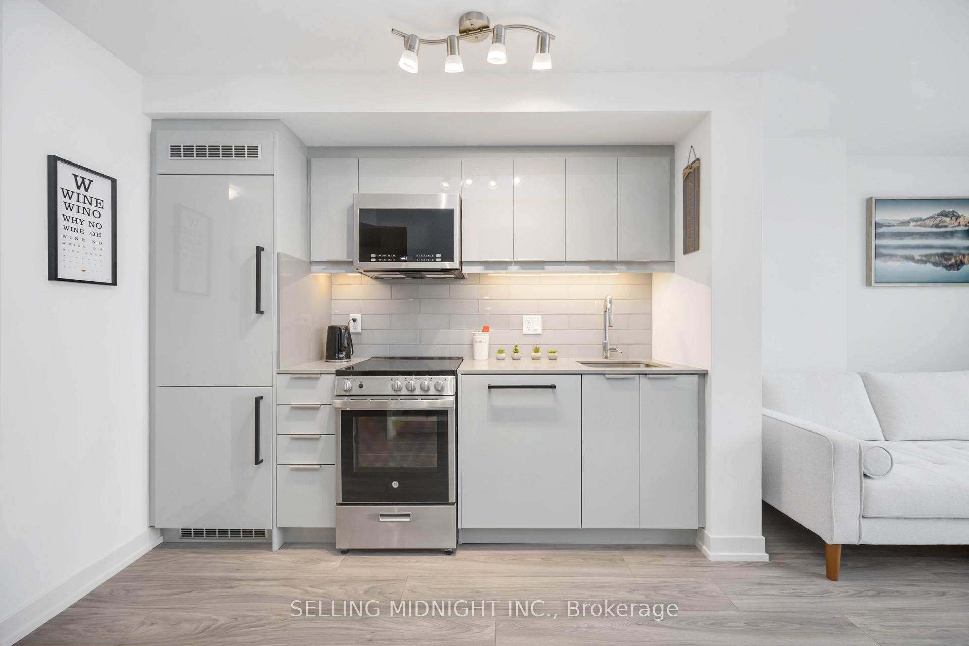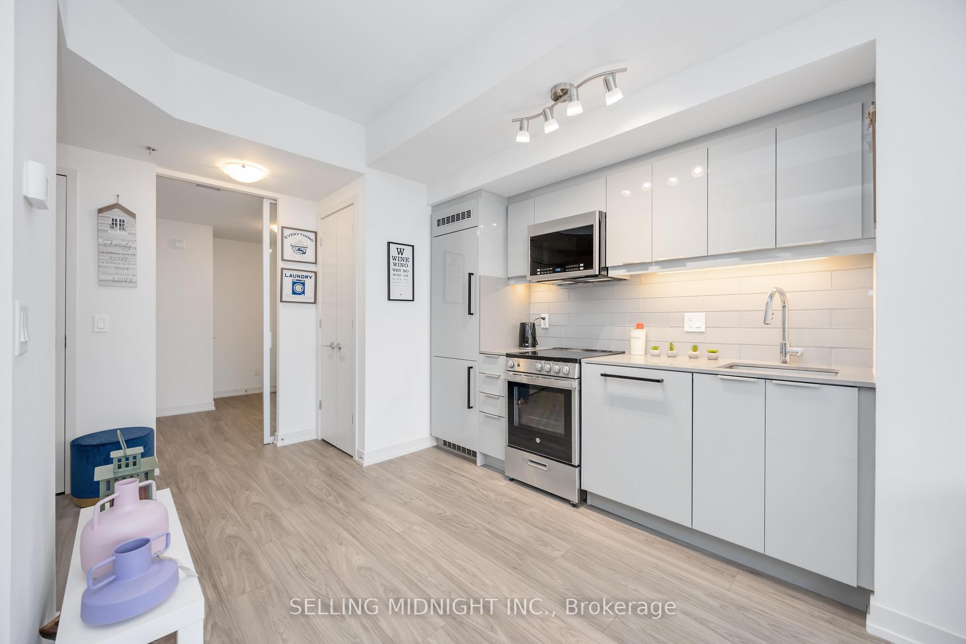 Experience modern living in this stunning 2 bedroom, 1 bathroom unit boasting breathtaking lake views. Floor to ceiling windows fill the space with natural light, highlighting the high quality flooring and sleek modern kitchen with stone countertops, backsplash, and built-in stainless steel appliances. The open concept design features soaring 9ft ceilings throughout. Enjoy the convenience of TWO parking spaces and a locker. Building amenities include a gym, rooftop deck with BBQ area, party room, media room, and pet spa. Steps from Rosetta McClain Gardens, Waterfront Trail, grocery stores, restaurants, Bluff Parks, and TTC transit. Don't miss out on this exceptional opportunity!