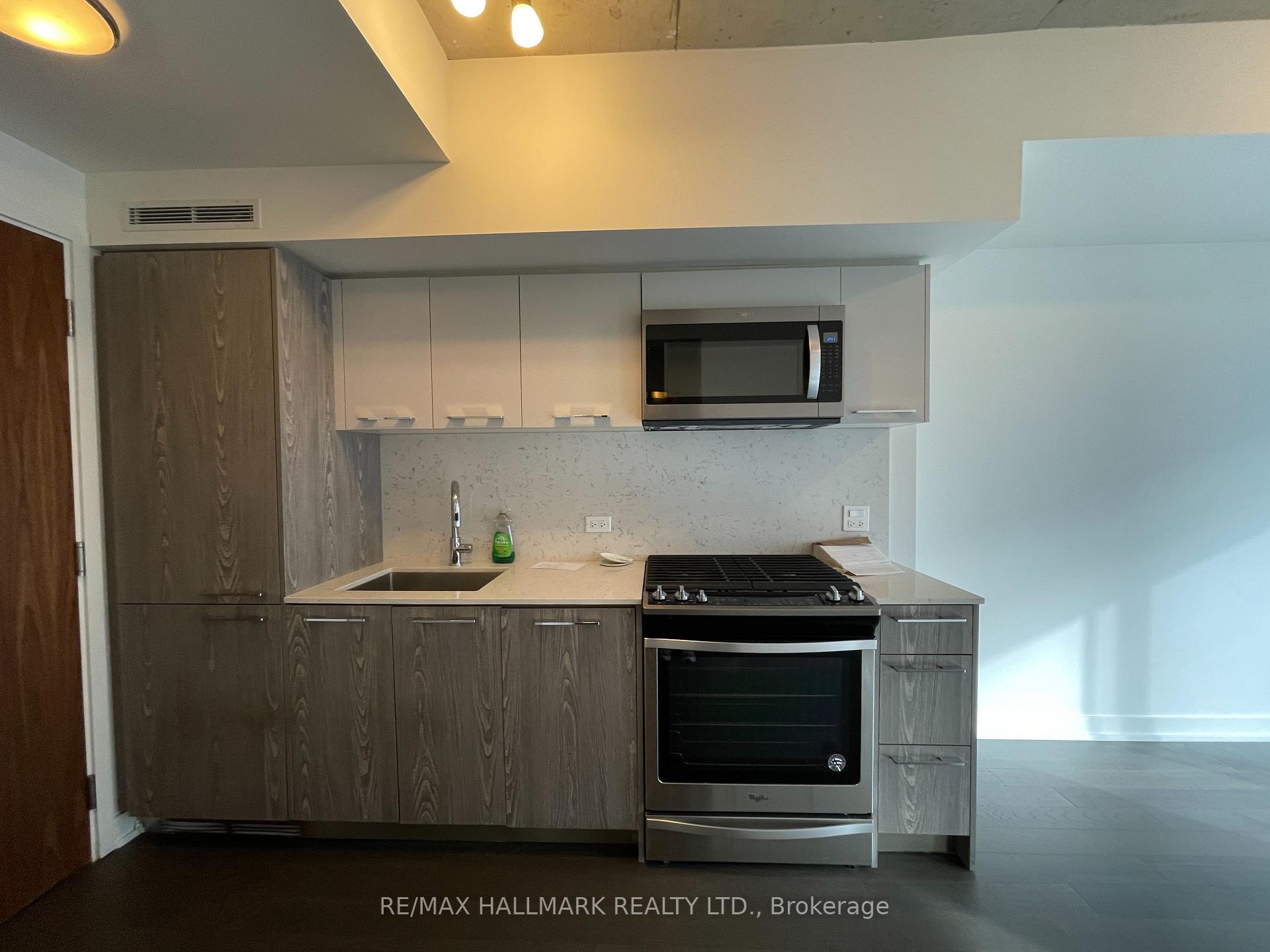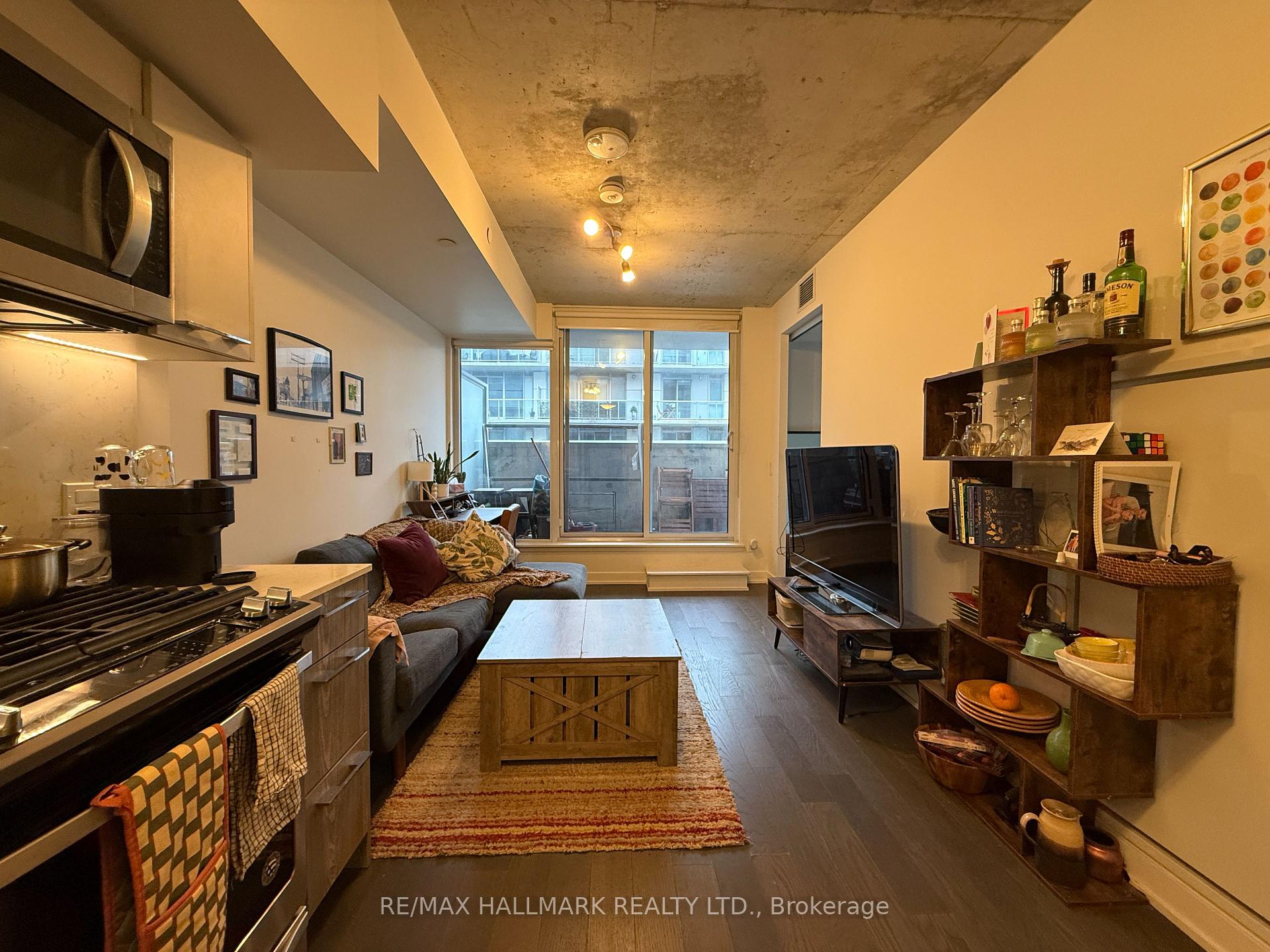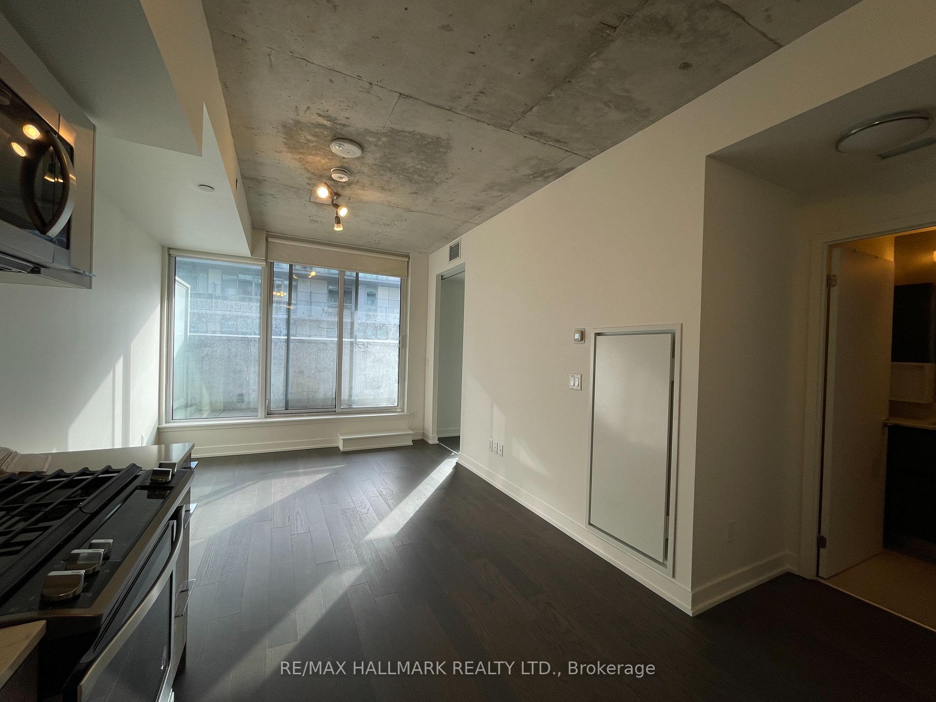 Loft-style condo in the heart of Leslieville / South Riverdale. Bright south-facing 1-bedroom suite with a large balcony, parking and locker included. Features 9' exposed concrete ceilings, engineered wood flooring, and a European-style integrated kitchen. Full-size in-suite washer and dryer. Step out to Queen St. streetcar and enjoy Leslieville's best cafés, restaurants, bars, and shops just minutes away. Building amenities include: 24-hour concierge, rooftop pool, gym, and party room.