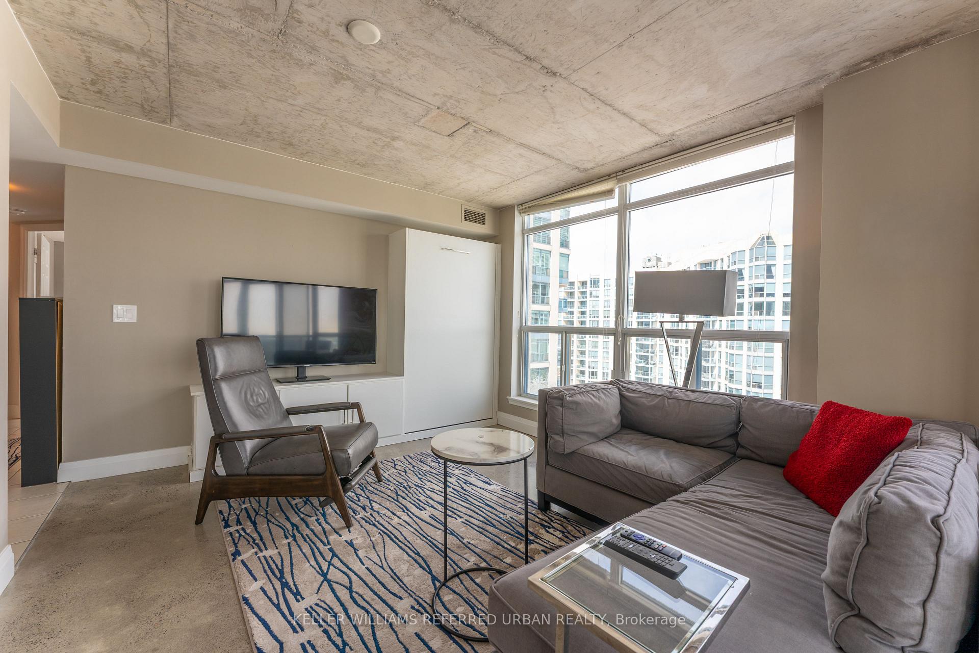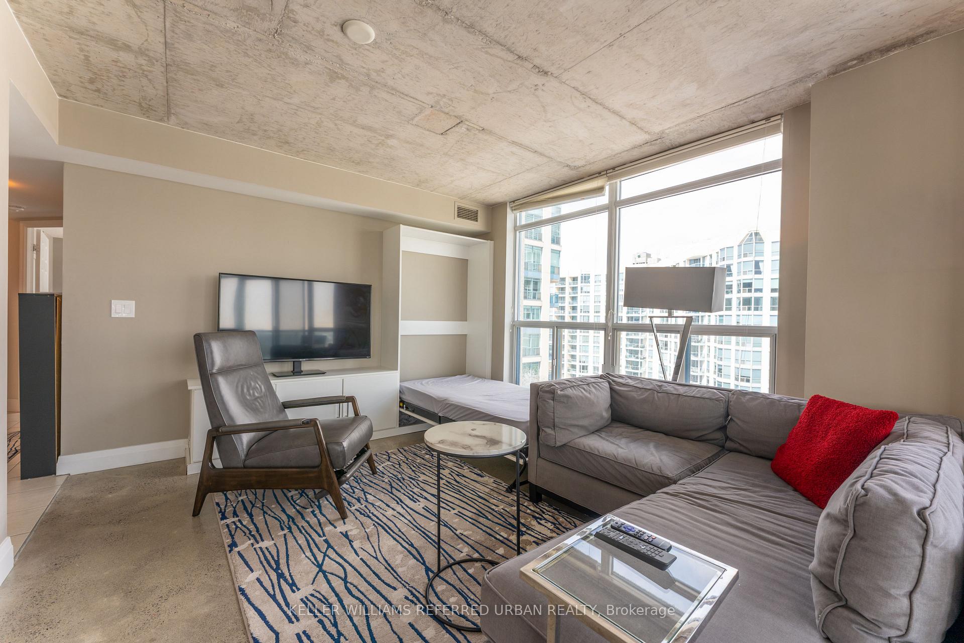 Large, renovated 1-bedroom condo (converted from 2-bedroom condo). 785 sq ft interior, with 48 sq ft balcony. Includes a Murphy bed in the living room and a newly renovated bathroom with walk-in shower. Enjoy an extensive list of amenities: two gyms, indoor pool, sauna, party room, library, rooftop pool deck, car wash, concierge, and community events. The best part = all utilities are included, even high-speed internet & cable! This would be at least $300 in another building. Comes with 1 parking spot and 1 locker.