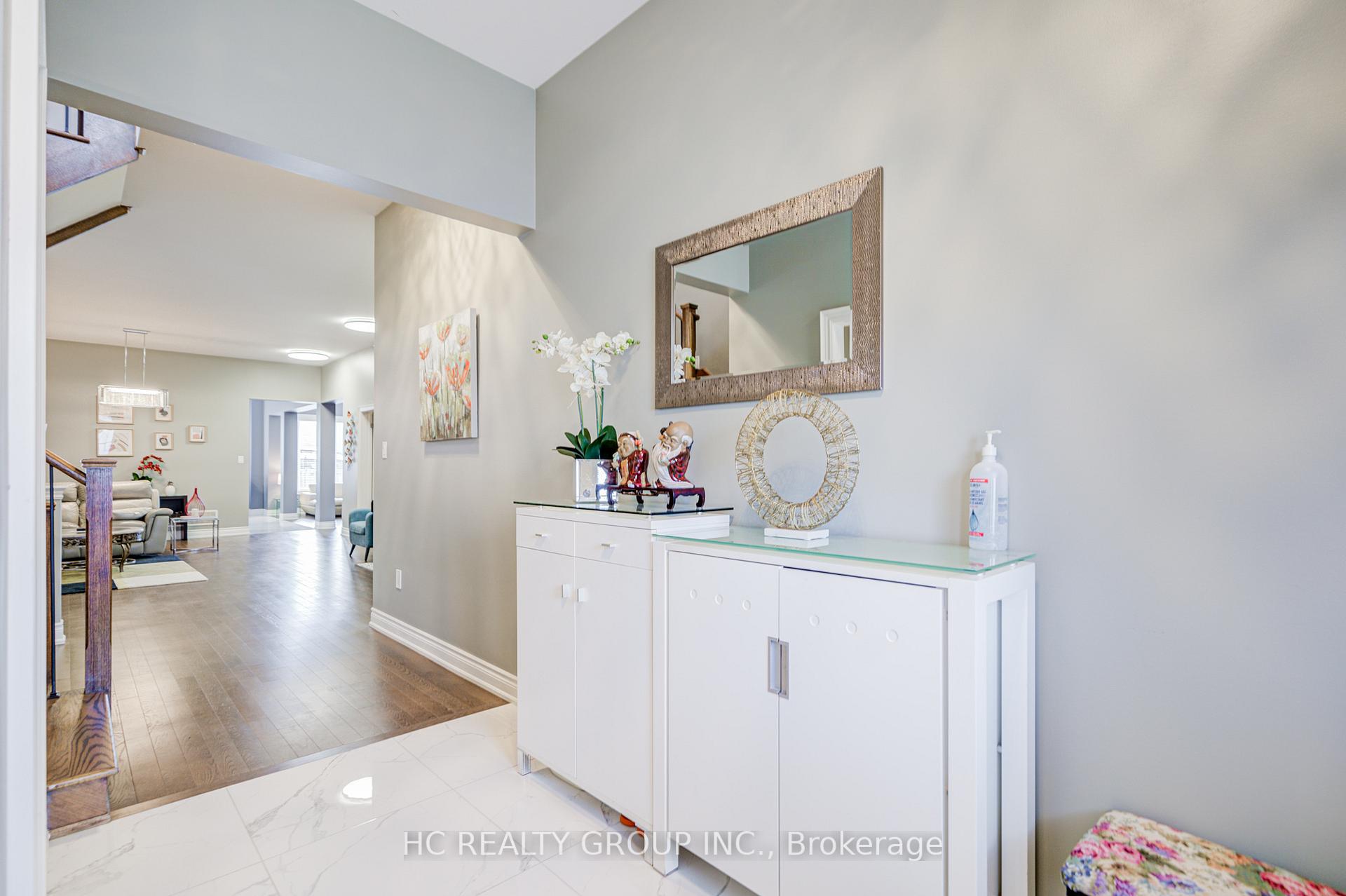 Welcome to your spectacular smart dream home in the desirable Sharon Community! Nestled on a quiet street, this luxurious residence offers over 3,600 sq.ft. of elegant living space above ground. Featuring 4 spacious bedrooms and 5 baths, this home combines modern comfort with timeless sophistication. Step into grandeur with soaring 10 ft ceilings on the main and 9ft ceilings on the 2/F, creating a bright, airy and open atmosphere. The gourmet chef's kitchen is a true showpiece- complete with custom cabinetry, full backsplash, high performance range hood, gas stove, and a large centre island, ideal for both cooking and entertaining. Enjoy the warmth of the cozy family room with a fireplace, or host guests in the sun filled living room with its dramatic high ceilings. The main floor office enclosed by elegant French doors and the 2/F sitting area offer flexibility perfect as potential 5th or 6th bedrooms. Upstairs, you'll find 4 generously sized bedrooms, all with hardwood flooring, The primary master features a large walk in closet and a spa like 5 pcs ensuite. A Unique separate entrance provides exciting potential for a future in law or income opportunity. Located in a prime Sharon Location, just mins to Hwy 404, Go Train, Public transit, Upper Canada Mall and all amenities.
