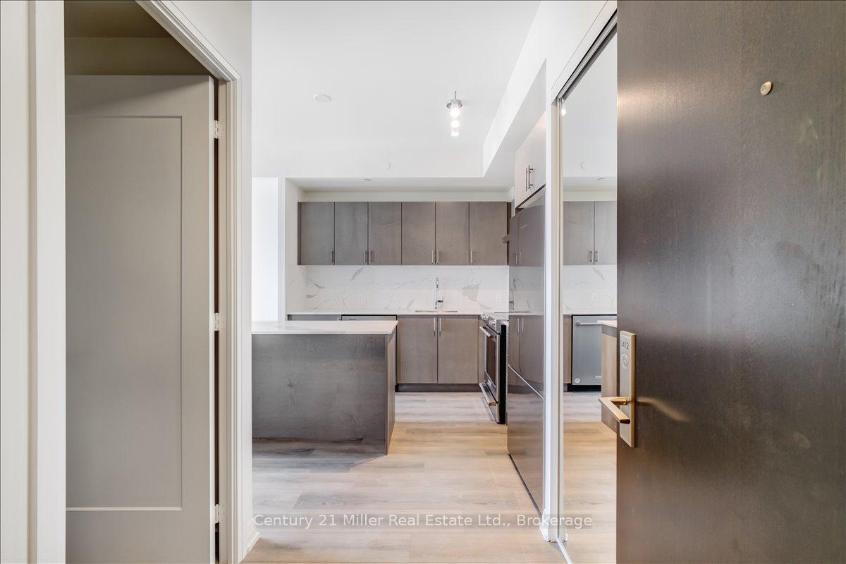 Welcome to Charisma in Vaughan. This stylish 1-bedroom, 1.5-bath condo offers a modern open-concept layout dressed in soft grey and white tones, creating a bright, airy, and inviting living space. Thoughtfully upgraded throughout, the kitchen features quartz countertops and backsplash, complemented by a marble counter in the primary bathroom for a cohesive, upscale finish. Grey engineered hardwood flooring flows seamlessly throughout the unit, adding timeless elegance. Residents enjoy impressive amenities including a ground-floor games and billiards room, family dining room, theatre room, and a 7th-floor outdoor pool with wellness centre-plus many more worth exploring. Ideally located just steps from Vaughan Mills, with easy access to Highway 400, public transit, restaurants, and everyday amenities, this condo delivers exceptional convenience without compromising on style or comfort. A perfect opportunity for first-time buyers, investors, or those seeking refined urban living in a prime location.