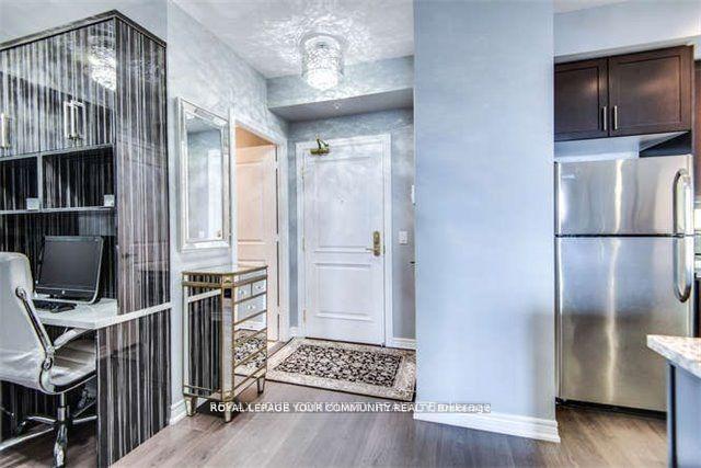 Stunning open concept design featuring 1 bedroom plus den with 2 bathrooms in the newest Bellaria Tower 4. The suite has been beautifully upgraded, featuring smooth 9-foot ceilings, an upgraded kitchen with granite countertops and matching backsplash. The custom-built wall units, shelves, and desk are made from imported Zebra wood, adding a touch of elegance. Crystal chandeliers enhance the ambiance, while the master bedroom impresses with Versace wallpaper and a rare oversized walk-in closet. Conveniently located near transit, Shopping, Vaughan Mills and Canada's Wonderland. Super clean and tidy. A beautiful space that will be a pleasure to call home and one you can be proud of.