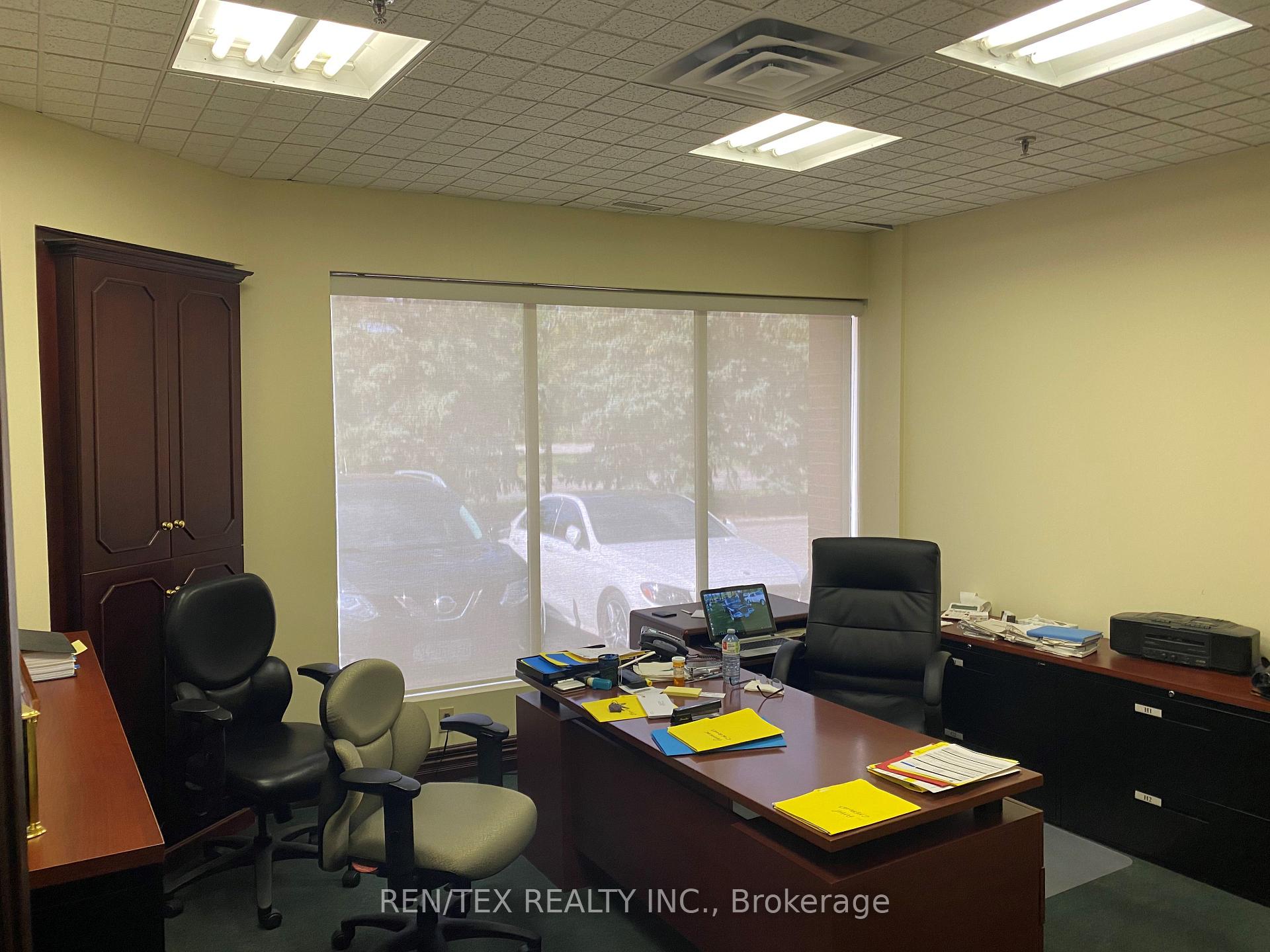 Excellent signage exposure on two sides. Ideal for a variety of office or showroom uses. End-cap unit with ample parking. Features recpetion area, three large executive offices, a spacious boardroom, two washrooms, storage area, and kitchenette. New LED lighting throughout.