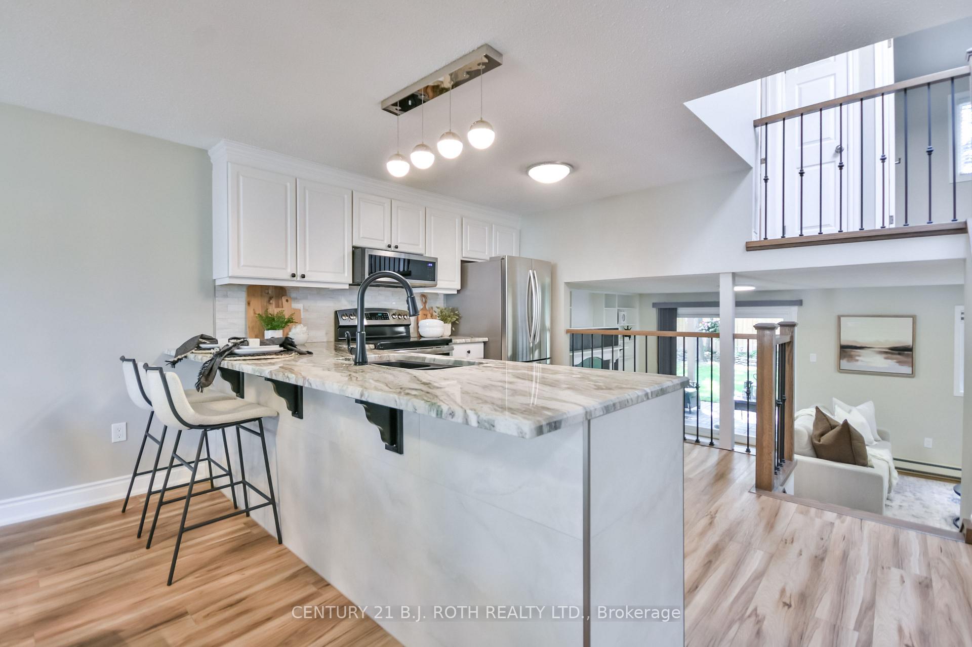 Welcome to 49 Ridgeway Avenue, a fully upgraded, turn-key 3-bedroom, 2-bathroom side-split located on a quiet, family-friendly street in Barrie. Thoughtfully and completely updated throughout, this home offers a warm, cozy feel with the peace of mind that comes from move-in-ready living. The bright main level features an inviting kitchen with a stunning breakfast bar island, and dining space filled with natural light - perfect for everyday living and entertaining. Upstairs, you will find two large comfortable bedrooms, with a third bedroom perfect for an office, play or hobby room. The home also has two three-piece fully upgraded washrooms, which provide a nice relaxing retreat. The finished sunken level has the perfect family room, equipped with a gorgeous gas fireplace, and one of two entrances to your beautiful large backyard, offering a spacious patio, Douglas-Fir Gazebo, and lots of mature trees and garden areas - the perfect entertainment spot, or for a quiet relaxing evening reading a good book and enjoying a nice glass of wine or coffee. With its three-level layout offering 1516 finished square feet, modern upgrades, and welcoming atmosphere, this home suits a variety of lifestyles, but it's absolutely perfect and meant for first-time buyers or downsizers. Enjoy close proximity to schools, parks, shopping, and commuter routes, all while living in a peaceful residential neighborhood. A flexible closing date, including immediate possession makes this an easy transition into your next chapter. We call this a turnkey home for a reason, check out these upgrades: Granite Countertops and Backsplash in Kitchen (2024), Luxury Vinyl Plank Floors throughout the home (2024), Oak Staircases (2024), Rod Iron Railings (2024), Driveway (2024), Heat Pump w/Air Conditioner (2019), Roof and Skylight (2017), Fenced Yard (2017), Interlocking Patio & Side (2017), Gas Fireplace & Gas BBQ Line (2016), Oversized newly insulated Garage with loads of space for storage and one vehicle.