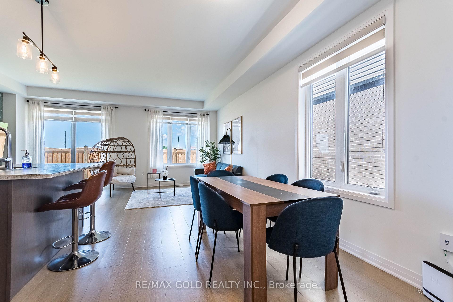The Centennial model is a beautifully designed End unit Townhouse situated in the Copperhill master planned Ventura South Community in South Barrie. Built by an award-winning builder, it boasts high-quality craftsmanship and attention to detail. Incredible opportunity to own this beautifully upgraded 4-bedroom, 3-bathroom. Offering stylish living space! This home features a modern kitchen that shines with stainless steel appliances, including a stove, fridge, dishwasher, and a chimney-style range hood. Sleek quartz countertops and a spacious island with seating complement all. Throughout the main floor, enjoy high-quality laminate and tile flooring, smooth ceilings, and a stained wood staircase with upgraded balusters. The thoughtfully designed laundry room with garage access includes a side-by-side washer and dryer, overhead cabinets. Conveniently located near Highway 400, the South Barrie GO Station, and walking and cycling trails