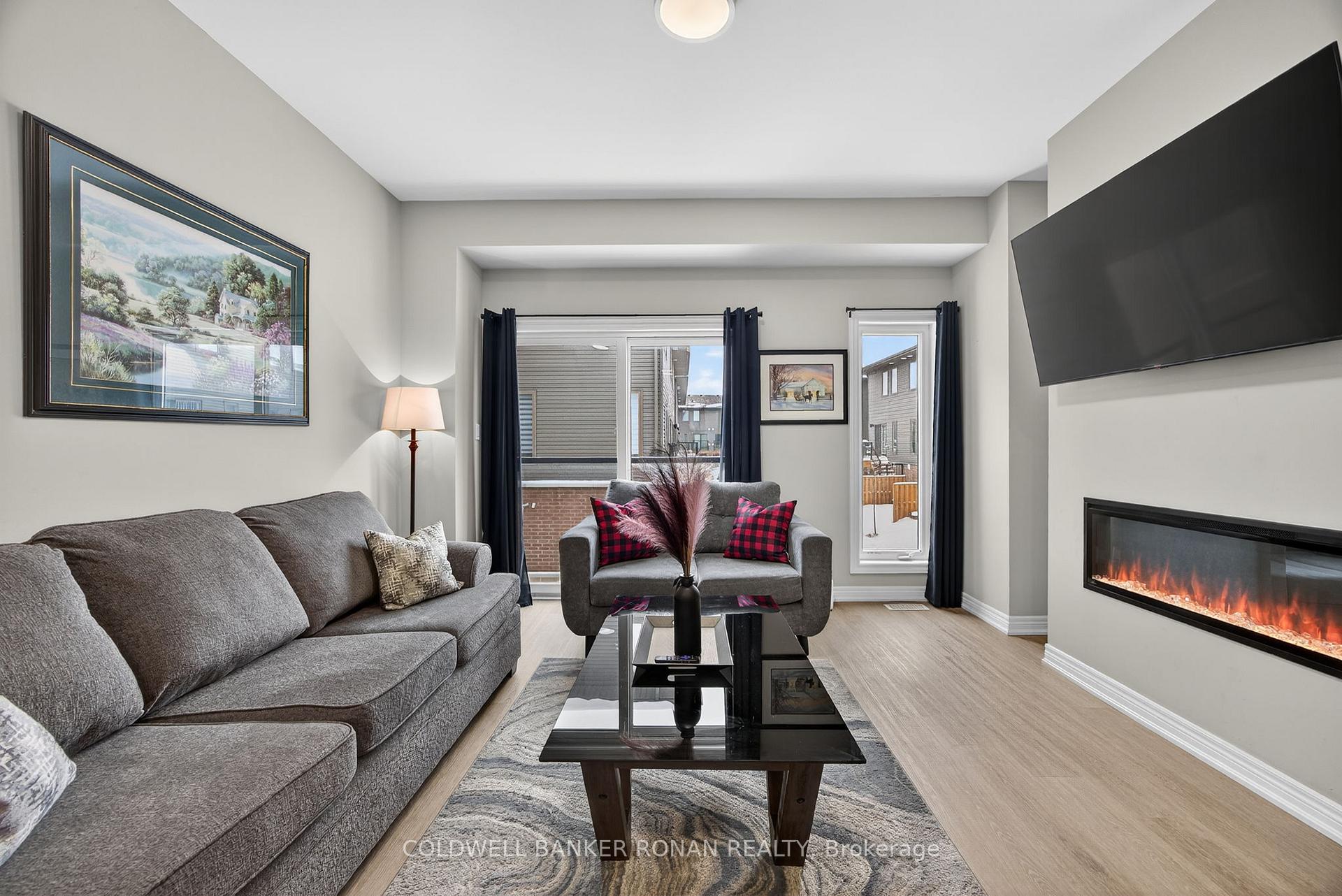 Comes Fully Furnished. Discover refined living in this executive townhome in the heart of Collingwood, perfectly positioned just minutes from the waterfront and vibrant downtown. Meticulously maintained and beautifully upgraded, this residence offers a contemporary design creating an ideal balance of elegance and everyday comfort. The main living area features a sun-filled, open-concept layout highlighted by oversized windows and a stylish fireplace-perfect for relaxed evenings. The sleek kitchen is thoughtfully designed showcasing premium Whirlpool appliances, quartz countertops, and custom cabinetry with ample storage. The home offers three well-appointed bedrooms plus a versatile den, including a convenient ground-level bedroom complete with a walk-in closet and direct access to the backyard. Additional features include an attached one-car garage and parking for two vehicles in the driveway. Enjoy easy access to downtown Collingwood, Sunset Point Beach and Park, shops, restaurants, Cranberry Golf Course, theatres, Scandinave Spa, Blue Mountain, and endless amenities.