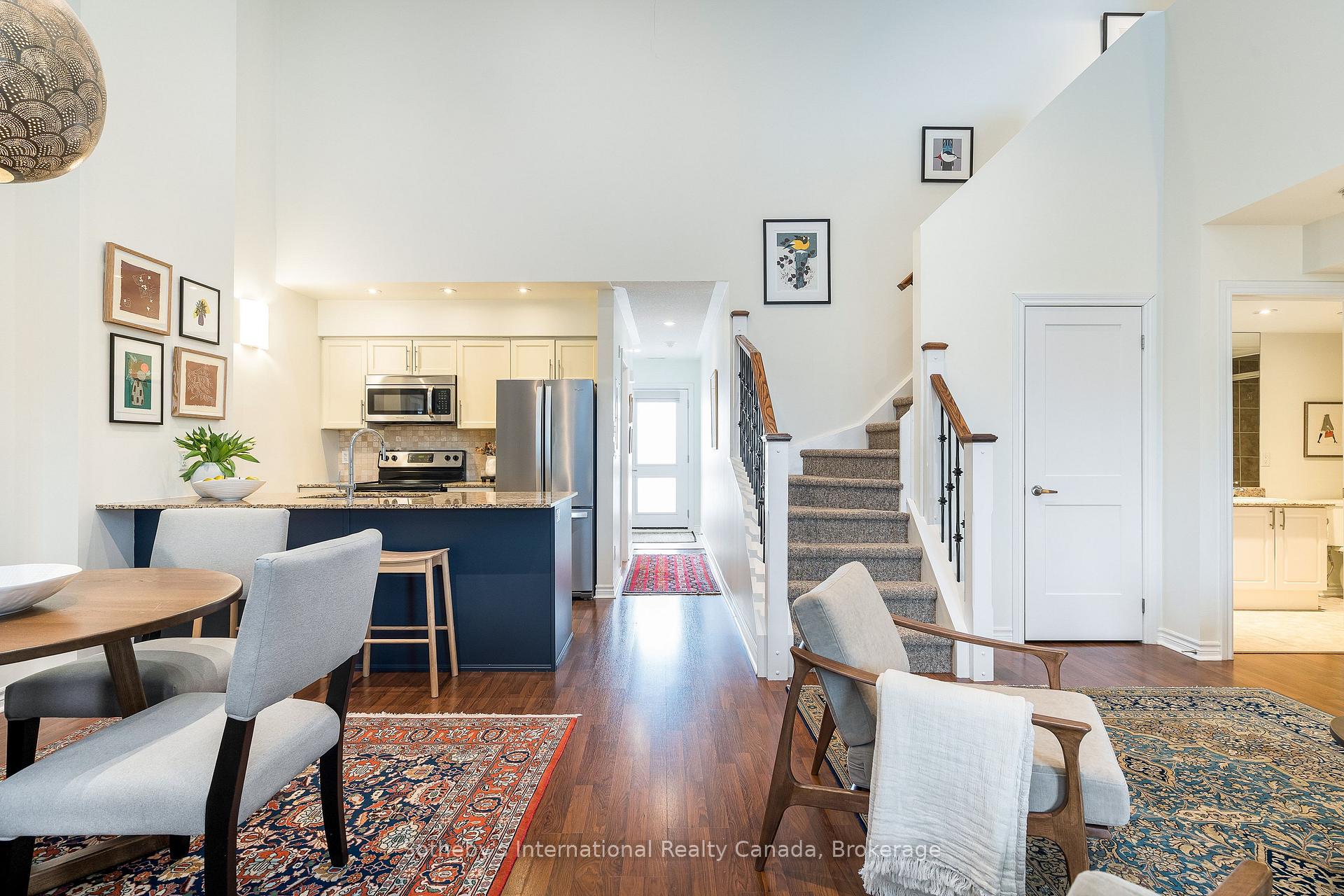 Exceptional value and superior design define this beautifully upgraded 1,394 sq ft loft-style condo in sought-after Wyldewood. Offering one of the most livable and well-proportioned floor plans in the community, this 3-bedroom, 2-bath residence features soaring 17-ft vaulted ceilings, an expansive open-concept layout, and exceptional natural light throughout. Over $30K in upgrades completed within the past two years reflect true pride of ownership. A cozy gas fireplace anchors the inviting living and dining areas, while the well-appointed kitchen features granite countertops, stainless steel appliances, a breakfast bar, and a generous pantry-ideal for both everyday living and entertaining. Elegant flooring and contemporary solid doors enhance the home's warm, refined aesthetic. A rarely found dedicated laundry room sets this unit apart, thoughtfully redesigned with a full-size stacking washer/dryer, stainless steel laundry sink, built-in drying rack, and additional storage-delivering a level of functionality rarely seen in condo living. A main-floor bedroom, accessed through French doors and overlooking Cranberry Trail, offers flexibility as a guest room or sun-filled retreat. The main floor primary suite provides a peaceful escape with a private 4-piece ensuite. Upstairs, the versatile loft level doubles as a third bedroom with a Murphy bed, a 4-piece bathroom, and ample space for a home office or relaxation area. Outdoor living is enjoyed on the private terrace with Phantom screens and BBQ hookup, surrounded by treed trails and scenic views. Additional highlights include contemporary blinds, a custom storm/screen door, ceramic tile entry, and a high-efficiency whisper-quiet furnace and A/C with smart thermostat. Residents enjoy access to a year-round heated outdoor pool and a prime Collingwood location-minutes to Blue Mountain, skiing, golf, trails, downtown, craft breweries, and Georgian Bay. An outstanding opportunity for quality, comfort, and exceptional value.