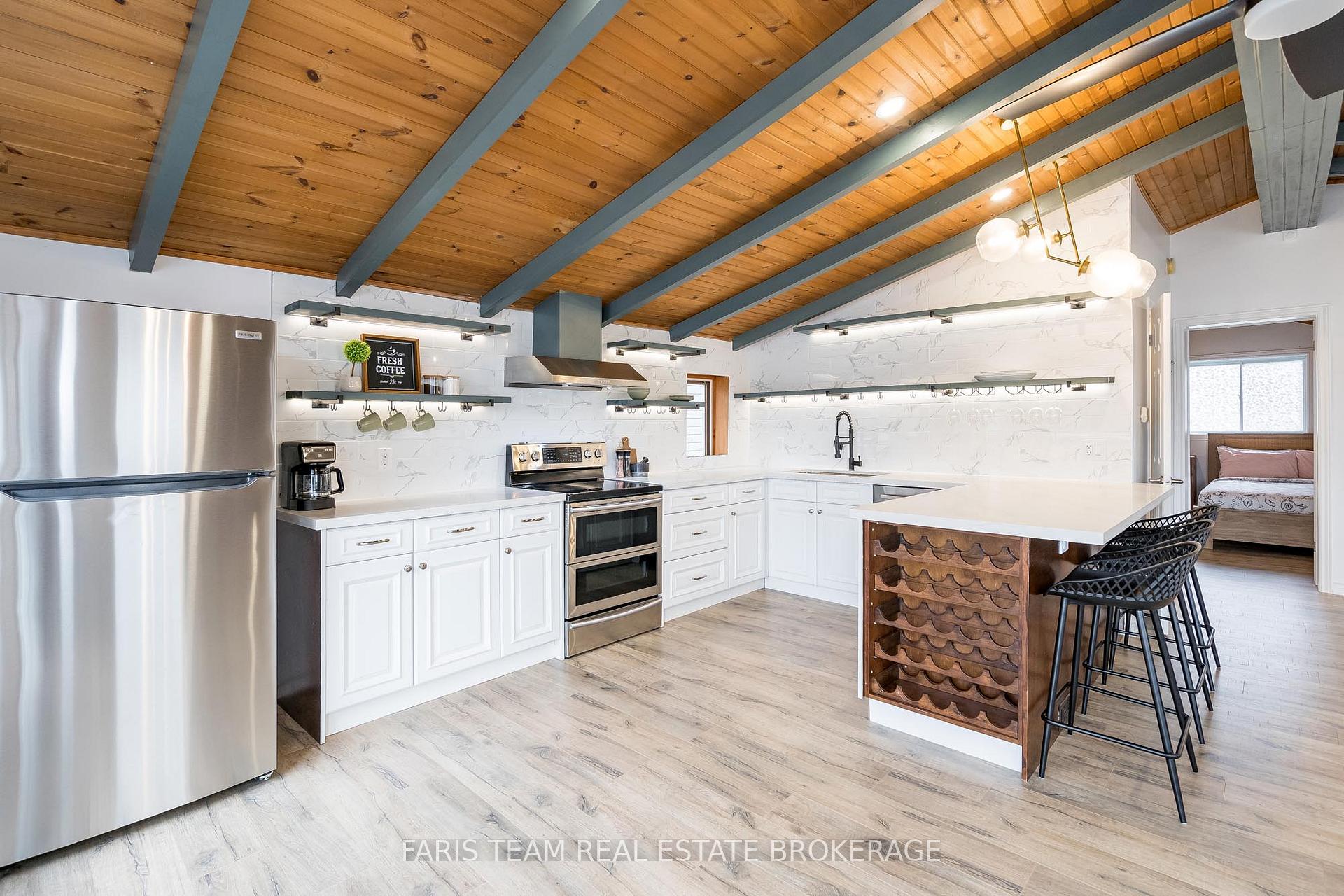 Top 5 Reasons You Will Love This Home: 1) Stunning panoramic views of peaceful Hogg Bay await a fishing enthusiast and those seeking direct access to Georgian Bay in this beautifully updated, move-in-ready four-season home 2) Wood vaulted ceilings and an open-concept main level blend rustic charm with modern updates, creating a welcoming and stylish retreat 3) Each bedroom offers a private, updated ensuite for a luxurious experience, ideal for families and hosting guests 4) Outdoors, you'll discover a wraparound deck with sleek glass railings, a cozy firepit, a refreshing outdoor shower, a private guest bunkie, and a dock for seamless access to the water 5) Conveniently located in Victoria Harbor, with nearby amenities just a short drive away and within easy reach of Highway 12 access. 1,669 fin.sq.ft.