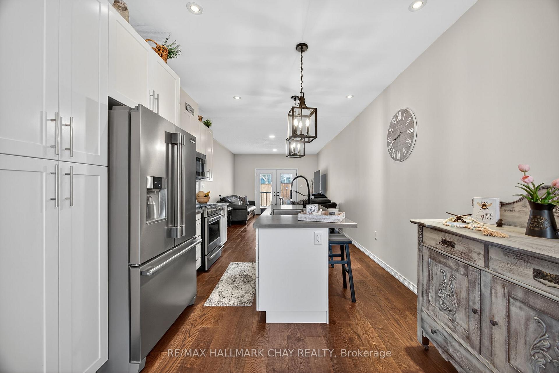 Completely Turn Key, 2019 Built, All Brick & Stone, Bungaloft Townhome In Sought After Orillia! With Over 2,300+ SqFt Of Available Living Space, Welcoming Front Foyer Leads To Open Concept Layout Featuring Elegant Finishes, Rich Hardwood Flooring, 9ft Ceilings, California Shutters, & Large Windows Throughout! Modern White Kitchen Boasts Stainless Steel Appliances Including Gas Range, Quartz Counters, Subway Tile Backsplash, & Large Centre Island With Breakfast Bar Seating. Living Room With Walk-Out To Backyard Deck, & Fully Fenced Private Backyard. 2 Bedrooms On The Main Level Are Great For Guests Or Family To Stay, With Closet Space, & Shared 3 Piece Bathroom! Retreat To The Private Primary Bedroom On The Upper Level, With Double Closets, 3 Piece Ensuite With Tile Flooring, & Additional Linen Closet! Fully Finished Basement Features Cozy Broadloom Flooring, Spacious Rec Room, & Additional Bedroom! Lower Level Laundry Completes The Basement With Laundry Sink & Additional Storage Space. Stunning Curb Appeal With Interlocked Driveway & Landscaped Lot. 1 Car Garage With Inside Access To Front Foyer & Direct Access To Backyard! Plus 3 Driveway Parking Spaces With No Sidewalk! Nestled In An Ideal Location, Close To All Major Amenities Including Costco, Lakehead University, Recreation Centres & Sports Complexes, Walter Henry Park, Hospital, Bass Lake, Provincial Parks, Walking Trails, & Couchiching Lake, Beach, & Golf + Country Club! With Tons Of Activities For The Whole Family To Enjoy, All That's Left To Do Is Move In!