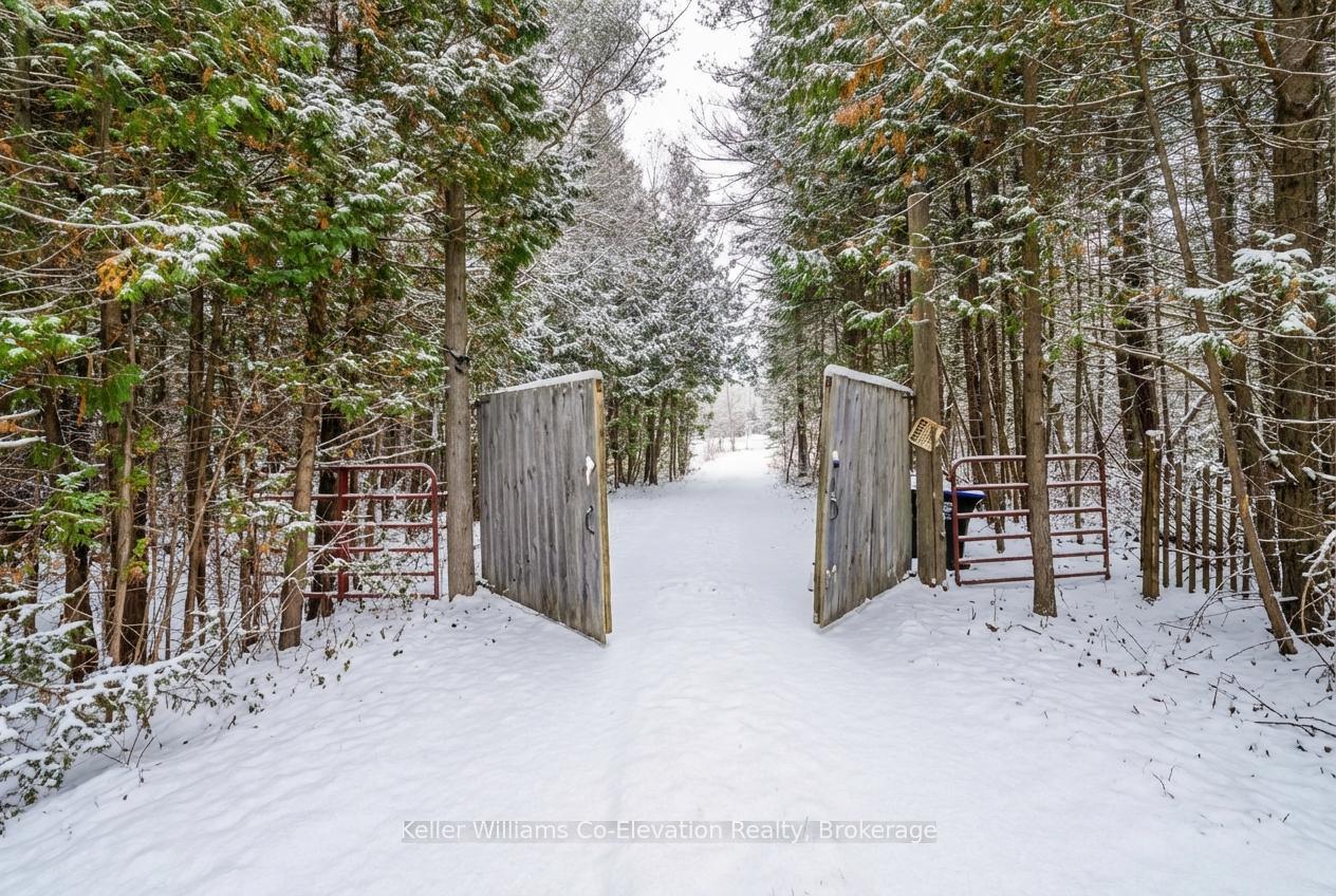 "The Winding Rivers Estate" has it all, privacy, location and acreage. This one of a kind state of the art Contemporary Home is a lifestyle retreat sitting on nearly 100 acres, this extraordinary property offers the perfect blend of peaceful living, recreational opportunities, and income potential. The land features open, treed and cleared productive farmland, and is surrounded by managed forest. A gated private drive crosses a bridge over Matheson Creek, winds past a spring-fed pond, and leads to over 3000 sq ft of luxury living space bordering Willow Creek. Sunlight pours into every inch of the home through the expansive windows and doors designed to frame the fabulous outdoor views. The amazing chef's kitchen comes complete with Sub Zero/Wolf and Viking stainless steel high end appliances a huge island and rustic high end finishes. The radiant in-floor heating, rustic wood beams, multiple fireplaces and custom touches throughout blend style with timeless looks. The 36x48 ft. two level hip-roof barn with space for 7 large stalls, has a free-span loft, concrete floor, hydro and water. The paddocks, run-in shed, and riding ring invites possibilities from equestrian pursuits to creative projects. Explore the large network of private trails weaving through the creeks and streams throughout the entire property; ideal for ATV or horseback riding, hiking or cross country skiing. A 24x60 ft greenhouse makes it easy for the avid gardener to spend hours cultivating their own indoor gardens. The gardens, wood and pump houses, plus wood and propane boilers, offer self-sufficiency in this agricultural zoned estate with a rare blend of natural beauty, long-term value, and exceptional privacy. Whether you're seeking a family retreat, hobby farm or simply space to breathe this is a property that delivers. Just 10 mins to Barrie, 15 to Horseshoe Valley and Vetta spa, golfing, skiing, and major highways, just imagine the endless possibilities that await in this remarkable estate.