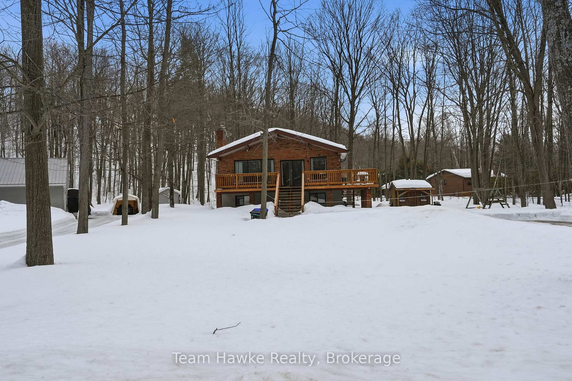 Welcome to 77 Tall Pines Drive in Tiny Township, located in the sought-after Tiny Beaches area just off the 16th Concession. This well-maintained brick bungalow sits on just under 3/4's of an acre, offering privacy, space, and a peaceful setting surrounded by mature trees. Inside, the home features a bright and inviting layout with vaulted ceilings and a beautifully updated kitchen that flows seamlessly into the main living space. The main level offers three spacious bedrooms and a full bathroom, with the bedrooms set slightly above the living area for added separation and privacy. The partially finished walkout basement expands the living space with sky-high ceilings, a fourth bedroom, an additional full bathroom, and direct access to the backyard-ideal for guests, extended family, or creating a comfortable recreation area. Outside, enjoy the expansive wraparound deck, perfect for relaxing, entertaining, or taking in the natural surroundings. The large lot provides plenty of parking and room to enjoy the outdoors while still being just minutes from the sandy beaches of Georgian Bay. A fantastic opportunity to enjoy year-round living or a peaceful retreat in one of Tiny Township's most desirable areas. NOTES: Roof 4-6 Years | Updated Kitchen | S/S Appliances 4 Years | LVP Flooring on Main Level and Stairs | Bedroom in Lower Level w/ Egress Window | Septic Documents Pending - Septic was Pumped and Inspected Through Tiny's Re-inspection Program in 2022