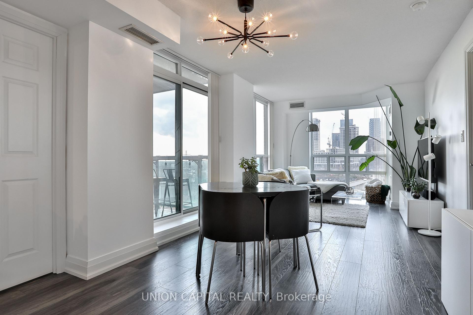 Bright and spacious 890 sq ft corner suite offering exceptional natural light and a highly functional 2-bedroom, 2-bathroom layout. This sun-filled home features southwest exposure, a beautiful balcony, and an open-concept living/dining area perfect for entertaining. The modern kitchen includes stainless steel appliances and a peninsula breakfast bar. Designed with privacy in mind, the split-bedroom layout includes a primary bedroom with a 4-piece ensuite, plus a generous second bedroom with great flexibility for guests, work, or family. Enjoy the convenience of one owned parking space and an extra-large (double sized) locker located steps from the unit! Residents enjoy excellent amenities including a gym, concierge, billiards room, media room, golf simulator, and more. Ideally located near Islington Station, parks, shops, cafés, and minutes to Hwy 427 & the QEW. A beautifully maintained, move-in-ready corner suite in a well-managed building with all-inclusive maintenance fees.