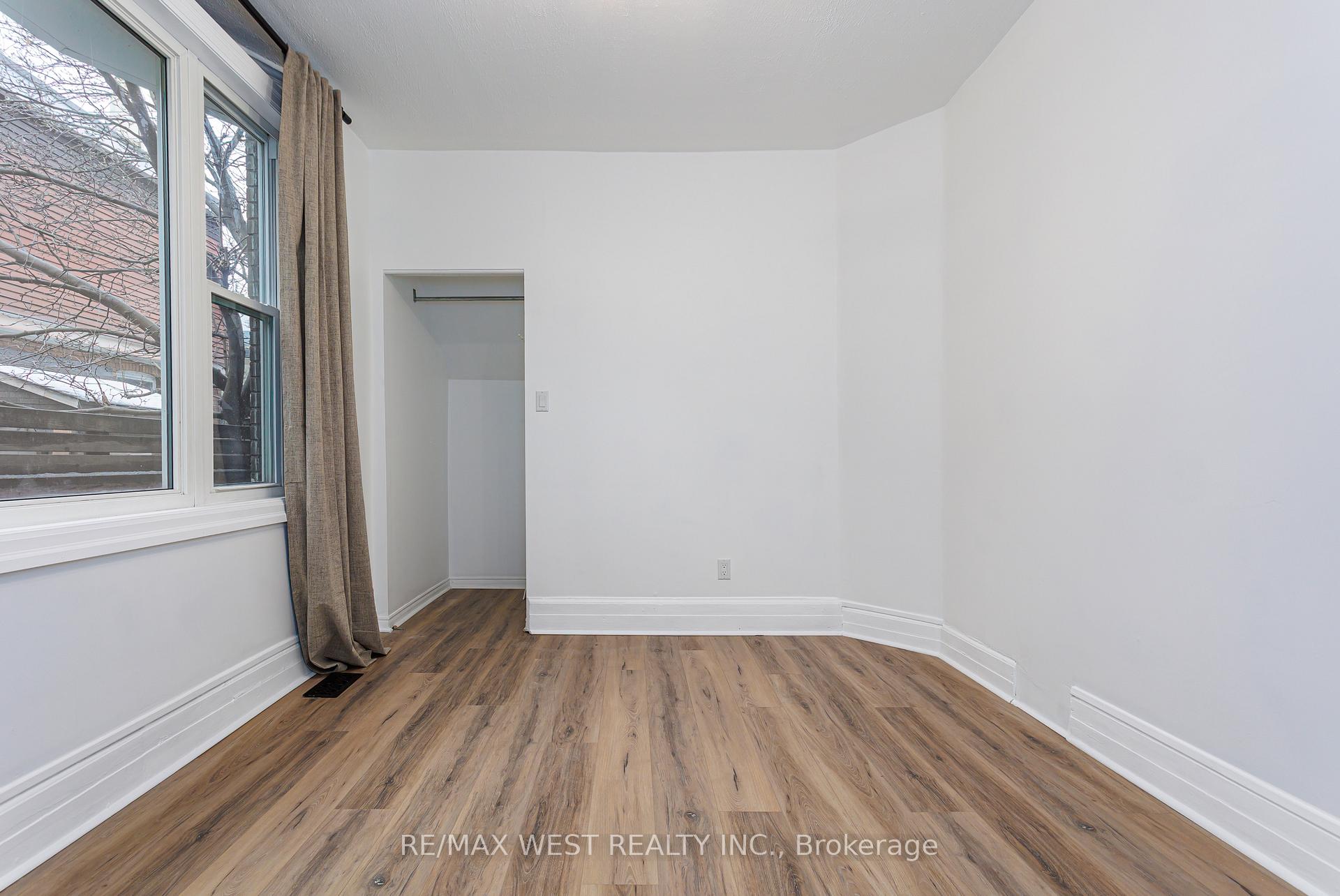 Main Level Newly Renovated One Bedroom Apartment. Exposed Brock Wall. Freshly Painted Walls And Cabinets With Brand New Floors That Were Just Installed. Brand New Kitchen. Large Semi-Exclusive Front Porch. New Light Fixtures. Large windows for Lots of Natural Light Exposure. Within Walking Distance To High Park, St. Josephs Hospital, Second Cup Cafe, Pizza Forno, Cherry Bomb Coffee, Tobiko Express, Meetpoint, The Whole Plate, Bossanova Wine & Beer & More. Within Driving Distance To Lakeshore Waterfront and Sunnyside Beach. Free Shared Washing Machine with Coin Operated Shared Dryer Machine. Semi-exclusive Front Porch. Professional Photos Coming Soon. Street Parking Only Via Permit. Unit is plus Hydro and 50% of gas bill for property. No Pets. Shared Backyard. Shared Bike rack out front. Available ASAP. Year Lease Only.