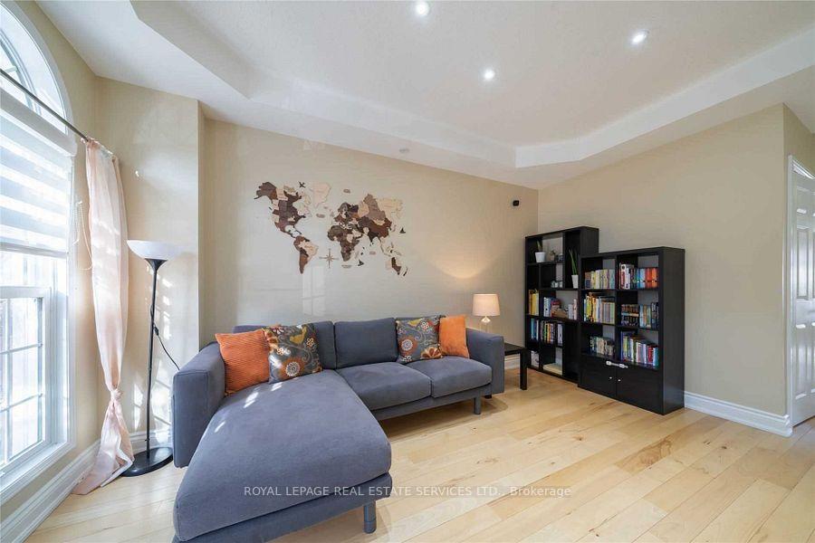 Beautiful, large solar-powered end-unit townhouse located in the highly sought-after UptownCore, within a great school district. This home offers versatile living space with an open-concept living and dining area, and a spacious eat-in kitchen featuring high-end custom-built hardwood cabinetry and black quartz countertops - perfect for entertaining. Large windows throughout the home provide an abundance of natural light. The second flooroffers a huge family room (can be used as a 4th bedroom), two generously sized bedrooms, andthe highly desirable second-floor laundry - no more carrying laundry up and down the stairs.The entire third level is dedicated to the primary retreat, complete with a walk-in closet anda luxurious 4-piece ensuite. High-quality hardwood flooring throughout the home. The professionally finished basement adds valuable living space, featuring a recreation room, aseparate bedroom, a 3-piece bathroom, and plenty of storage.Enjoy the low-maintenance backyard, ideal for summer entertaining and BBQs, equipped with anatural gas line. Outstanding location-less than 5 minutes to Walmart, Costco, Fortinos, Superstore, restaurants,bars, parks, and Oakville GO.Owned solar panels help reduce hydro bills.