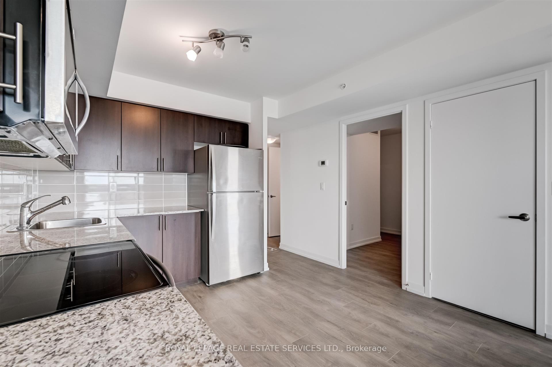 Enjoy modern urban living at Fuse Condos in this bright and well maintained 1 bedroom + den. Great layout! Open concept kitchen & living/dining area with ceramic backsplash, stainless steel appliances and walkout to balcony. Rare for its size, the unit offers two bathrooms (4pc and 2pc), ensuite laundry and a den perfect for a home office. Enjoy the sunsets overlooking the complex courtyard. Onsite grocery & Shoppers Drug Mart. Walking distance to local shops & retail. TTC at your doorstep and close proximity to the Bloor subway line. All amenities located on the second level of complex and include an exercise, theatre, yoga room & library. Do not miss out! Photos taken prior to last tenancy.