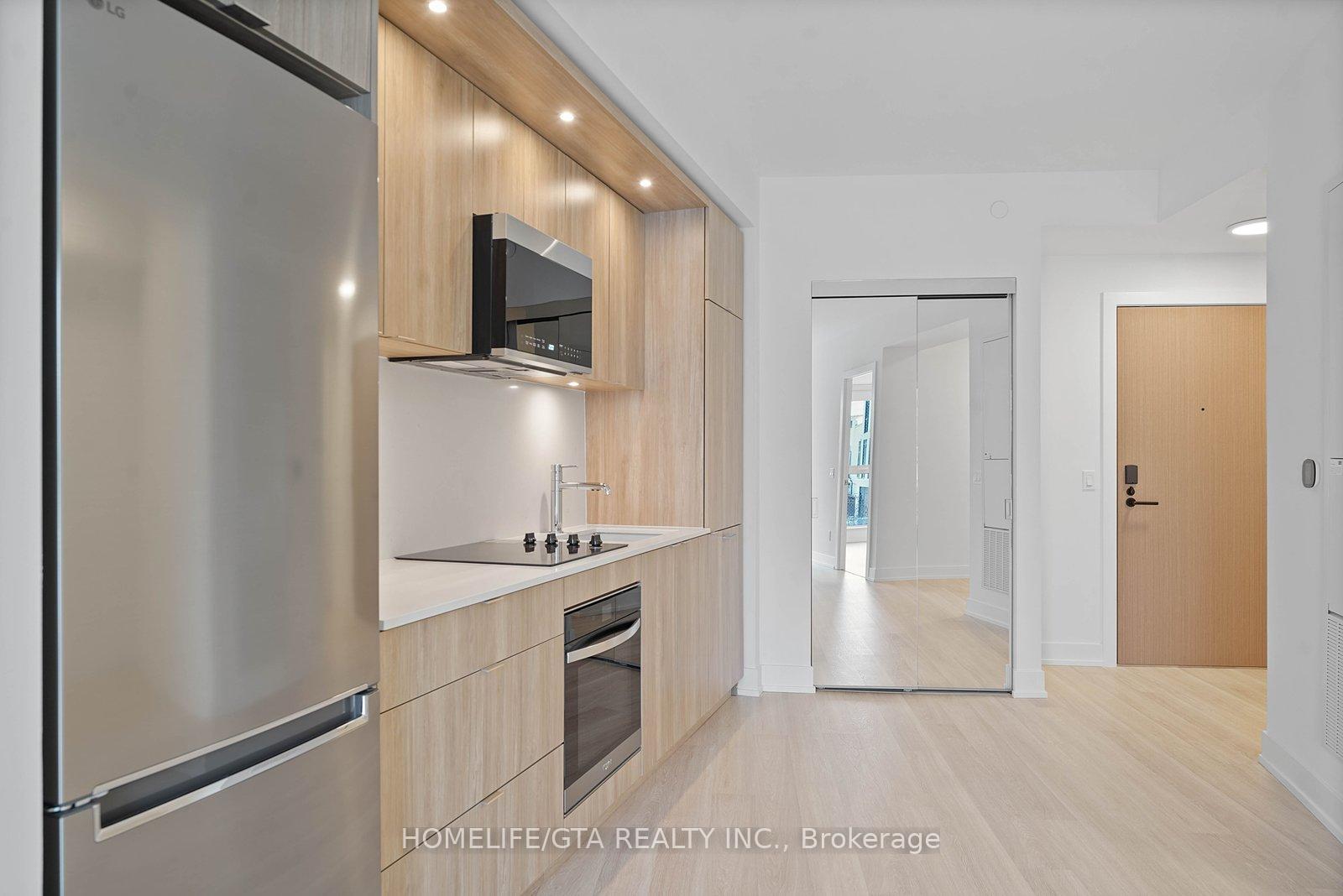 Welcome to Westerly I by Tridel! Large 1+Den/1 Bathroom Condo available with Parking available immediately. This large North East facing has no waste of Space! Walk into an open concept kitchen/dining area with lots of storage, built in stainless steel appliances and under the cabinet lighting. Large living room offers North East views of the green space while the den is large enough to fit a single bed. Large 4 pc bathroom offers a tub.Primary Bedroom offers a walk in closet and large windows. Westerly I is more of a boutique style building that offers a Cozy Lobby in the city, a good sized gym, grand party room. This building is perfect for commuters and those who work from home. There's ample of visitor parking offered in the building. Come be one of the first residents in the building today!