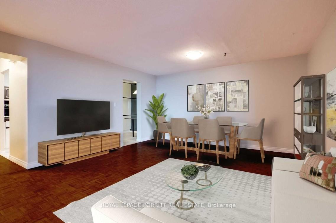 Largest floor plan in the building, this spacious 3-bedroom plus den residence offers a rare combination of size, comfort, and location-ideal for those seeking bungalow-style living in a condo setting. Enjoy a spectacular, unobstructed view of the Toronto Golf Club, providing a peaceful backdrop year-round. The updated new kitchen features modern finishes and lighting, perfect for everyday living and entertaining. The versatile den works well as a home office or additional 4th bedroom. Convenience is enhanced with ensuite laundry room and underground parking. All utilities, cable TV, and building amenities are included, offering excellent value and simplified monthly expenses. The building also features a new enter-phone system for added security. Steps to the Long Branch GO Station and TTC loop, and directly across from Marie Curtis Park, this location offers immediate access to the waterfront trail system, parks, and green space. A rare opportunity to lease a generously sized condo that lives like a bungalow, with the ease and amenities of condo living.